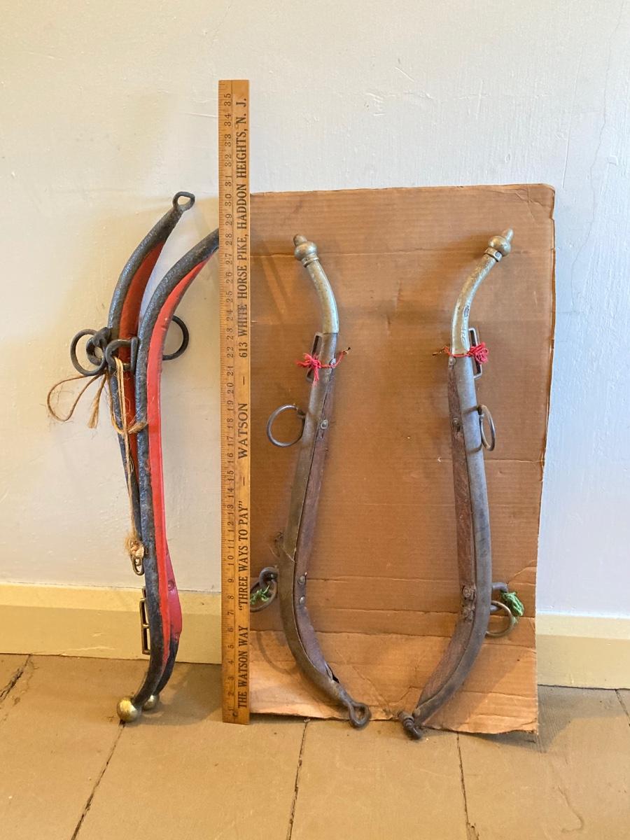 LOT 312: Pair of Vintage / Antique Metal and Wood Cow / Horse Yokes