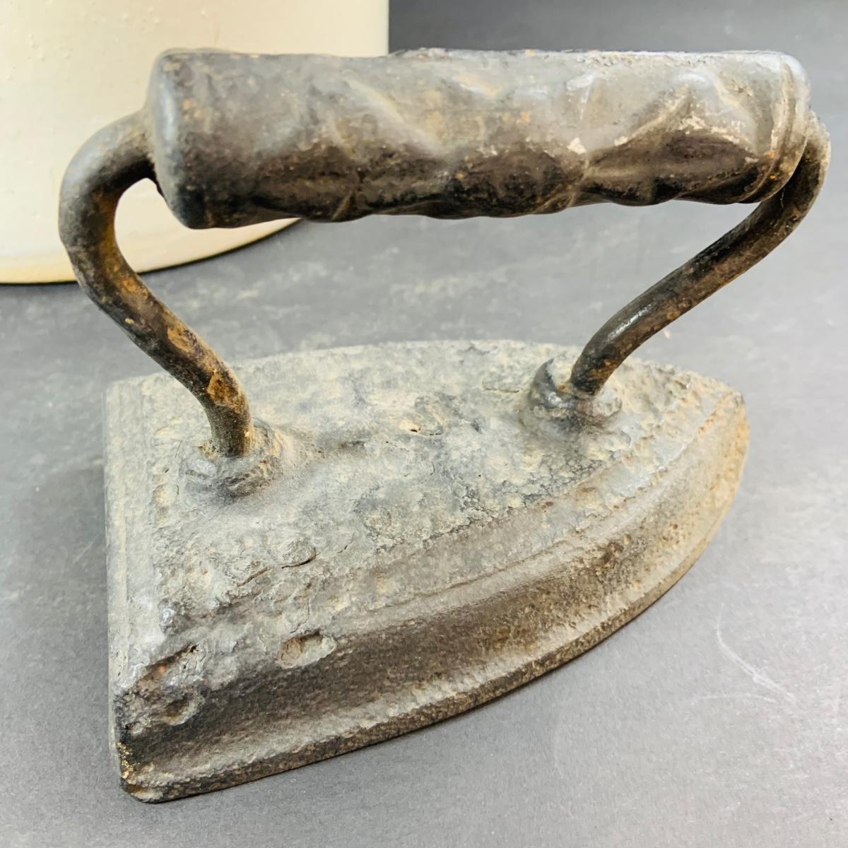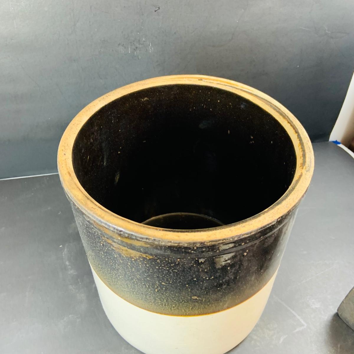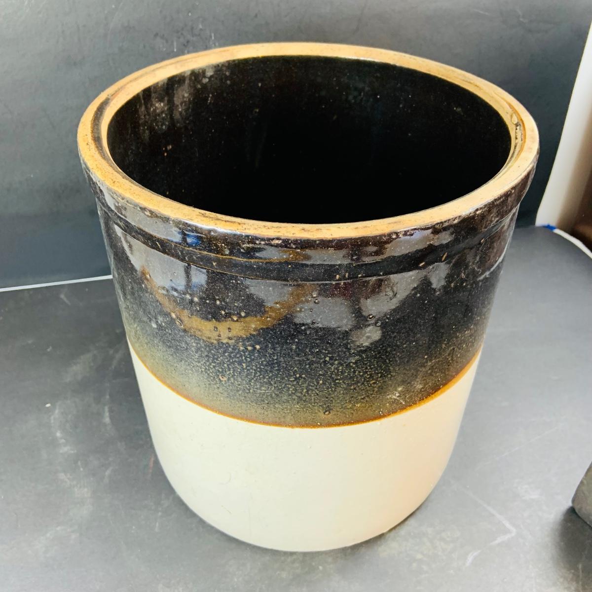 LOT 335: Vintage #2 Stoneware Crock and 2 Cast Irons