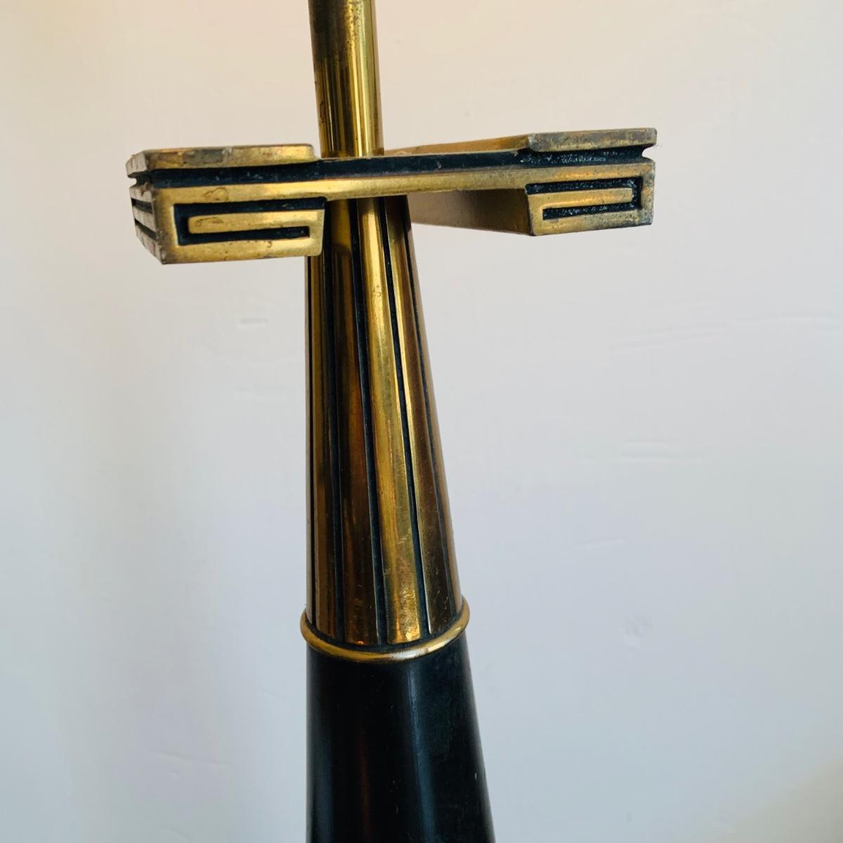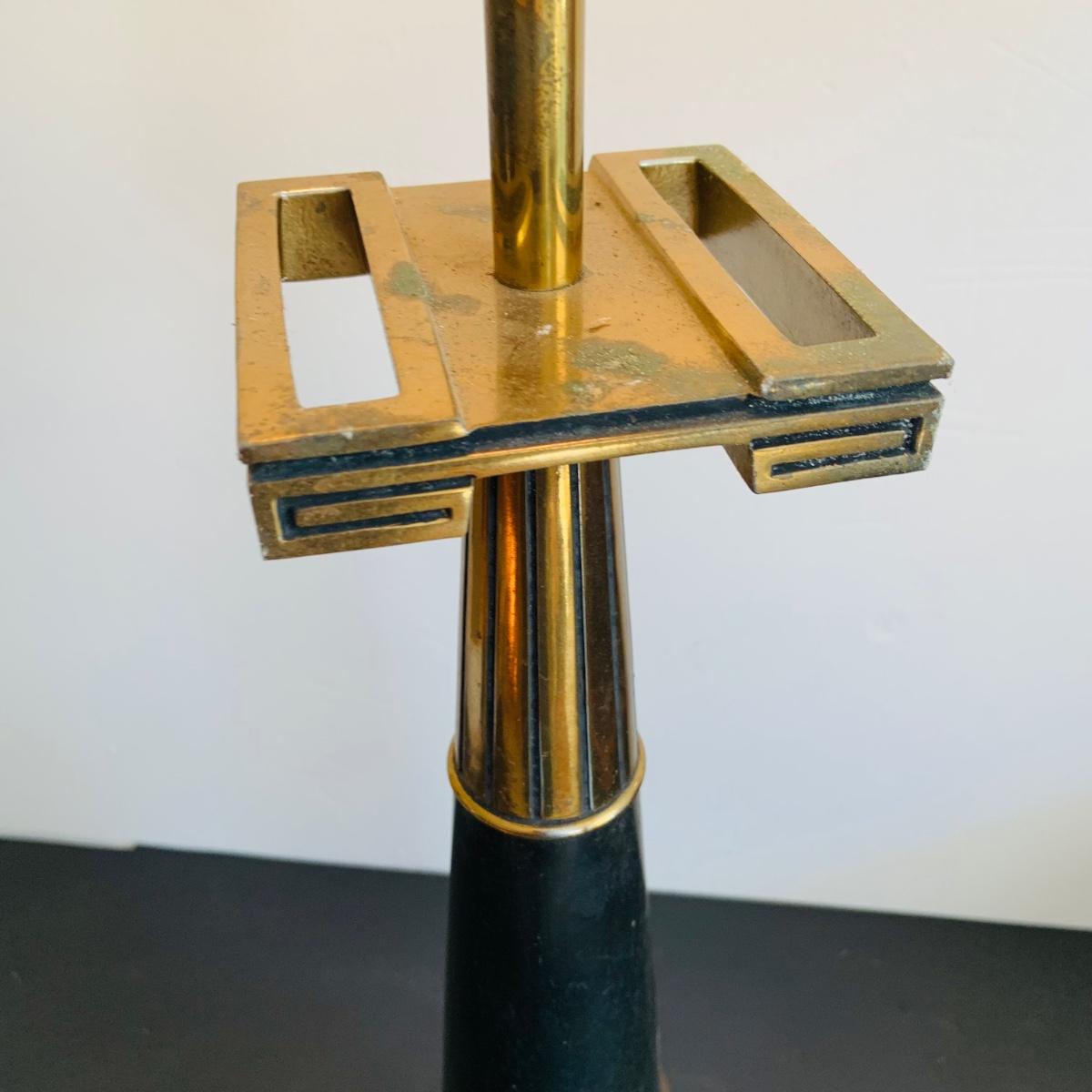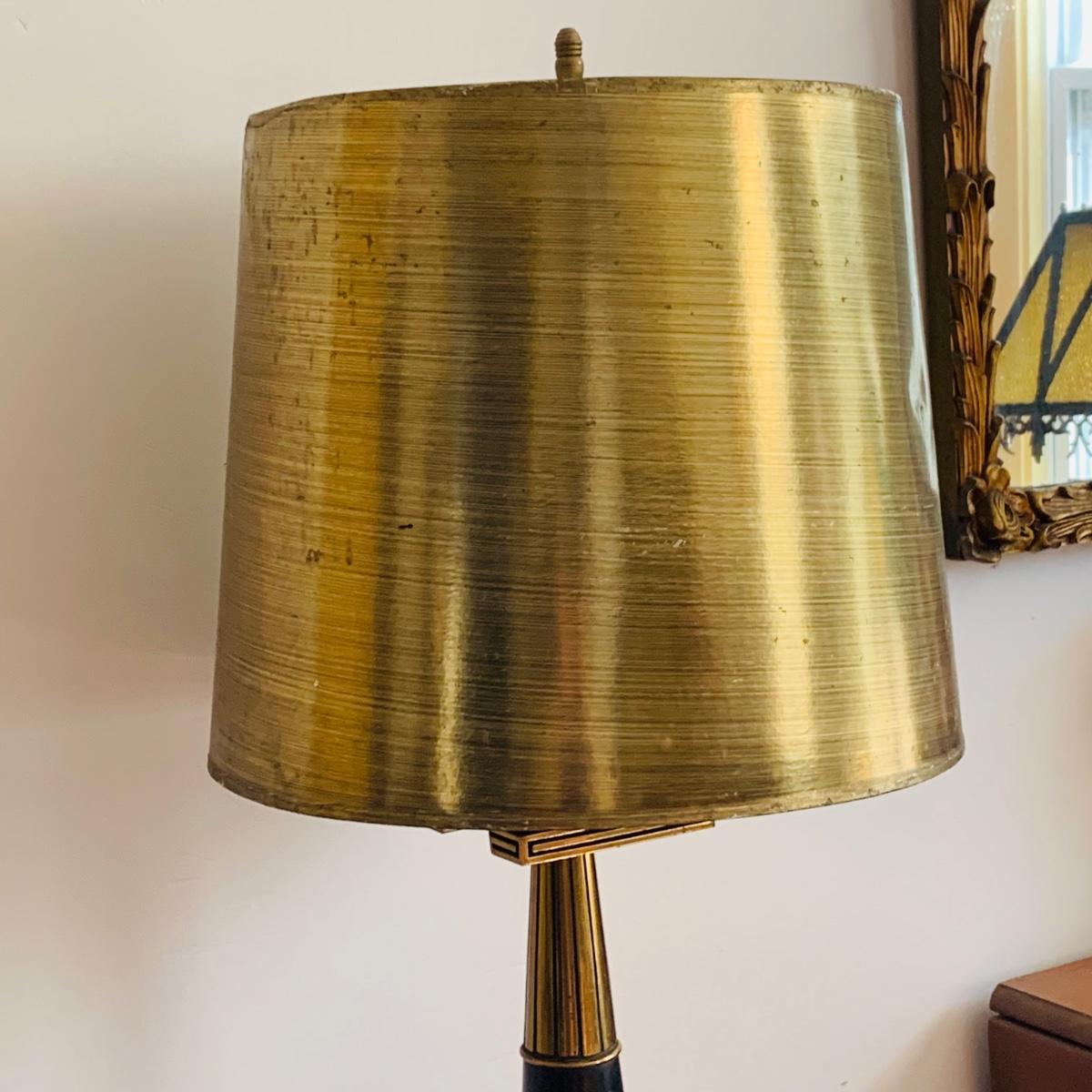 LOT 340: Mid Centry Stiffel Black and Gold Table Lamp with Gold Shade