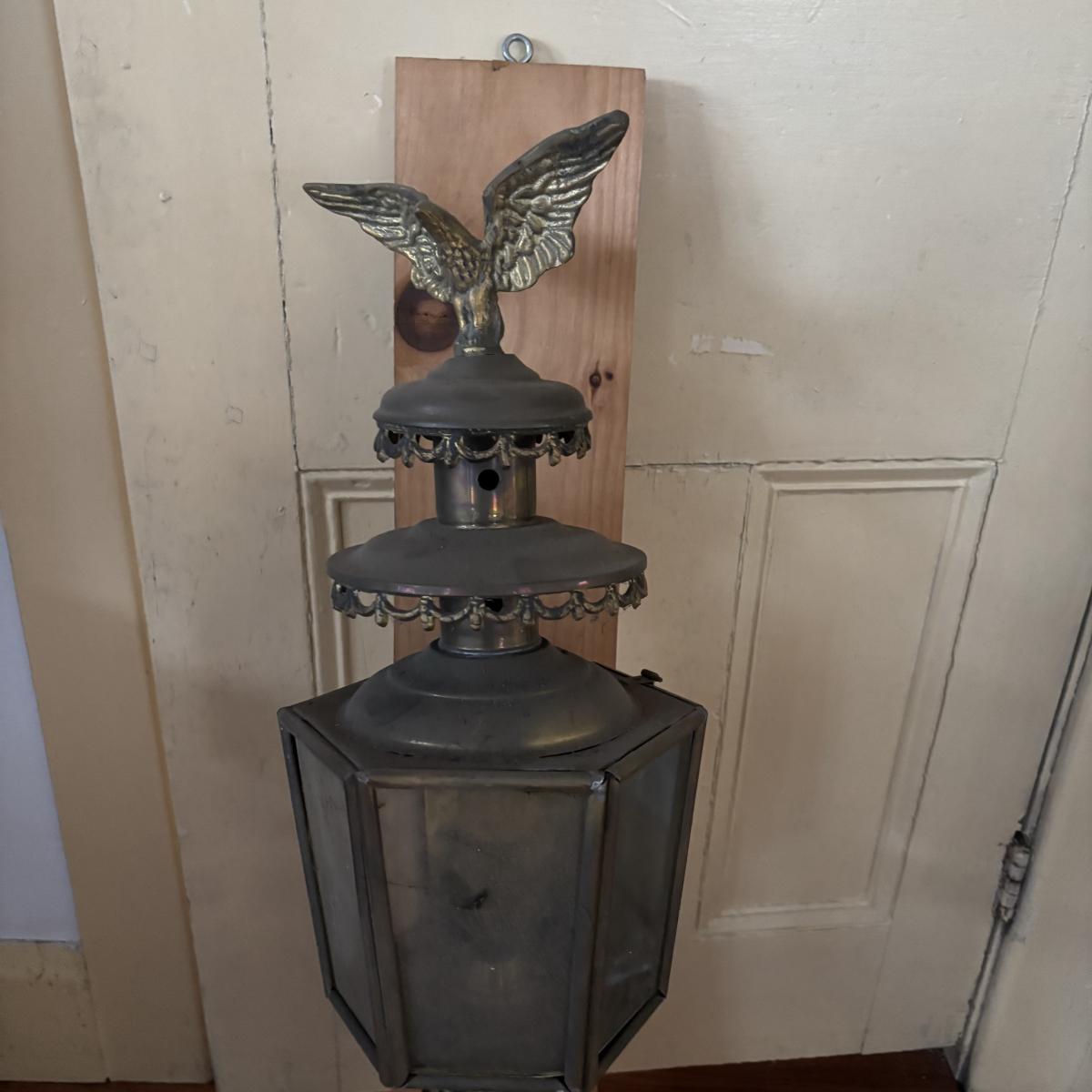 LOT 386: Vintage Eagle Brass Hexagonal Carriage Lantern