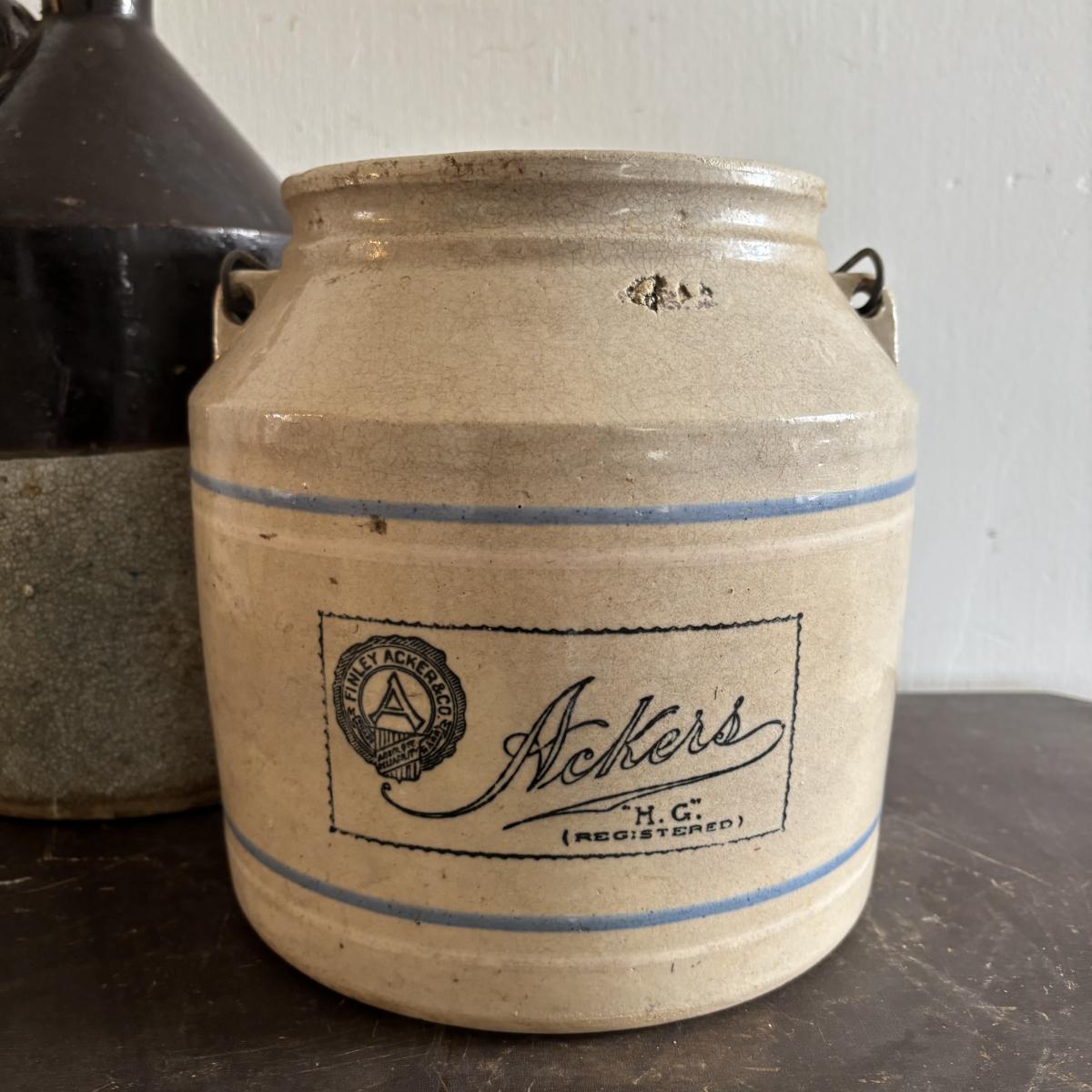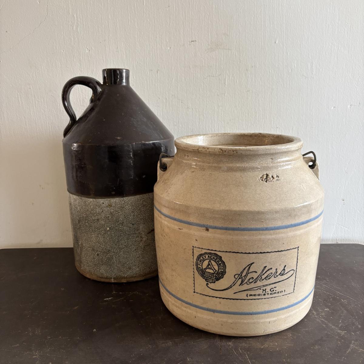 LOT 389: Vintage Stoneware Finley Acker & Co. Cheese Crock & Stoneware Jug