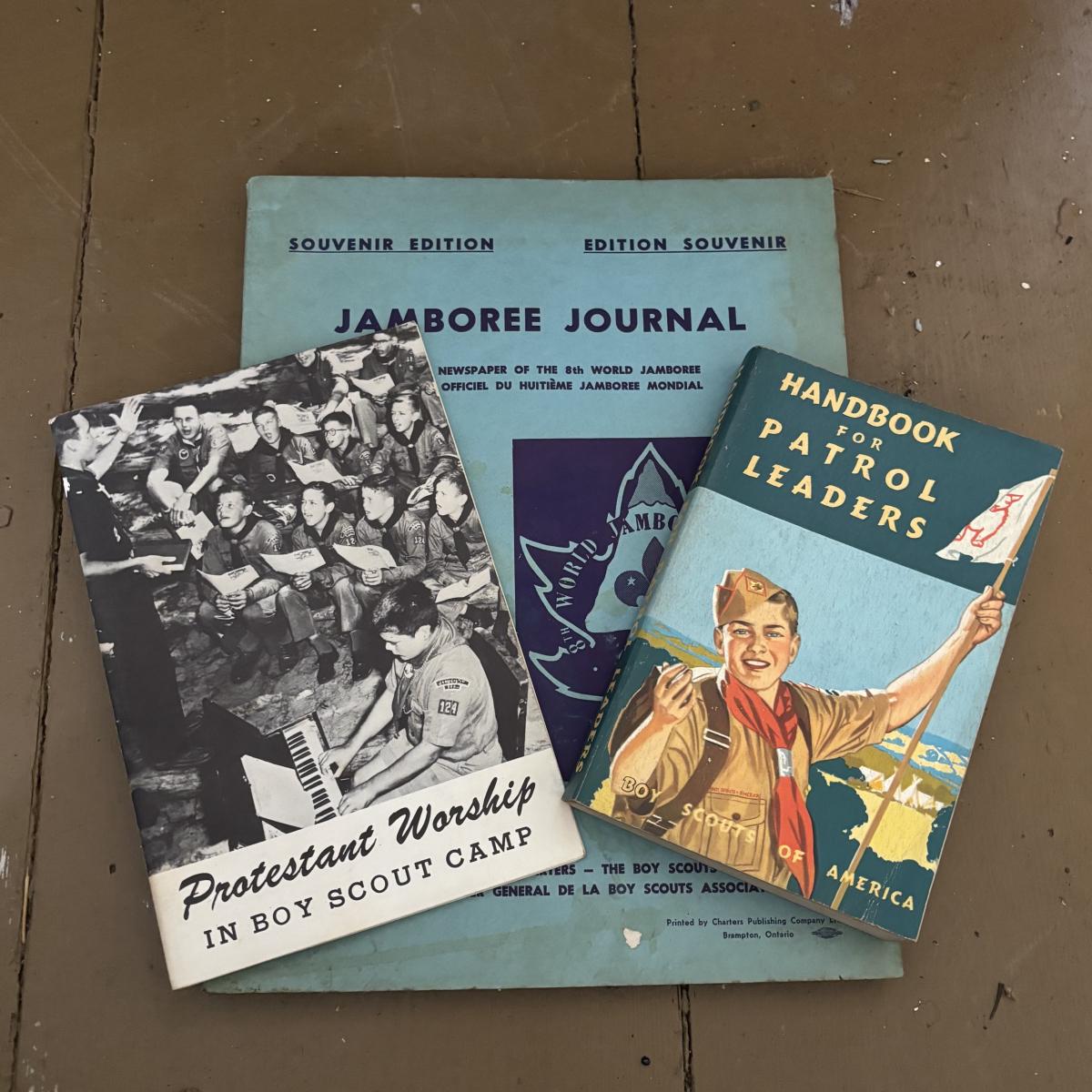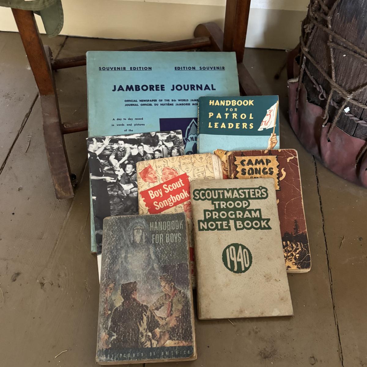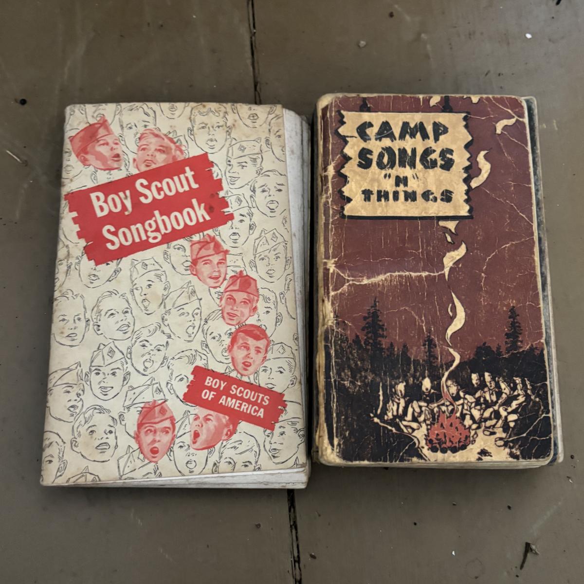 LOT 388: Boy Scott of America Collection: Handcrafted Barrel Drum & Miniature Canoes, Clothing w/Patches, Handbooks, Song Books & More