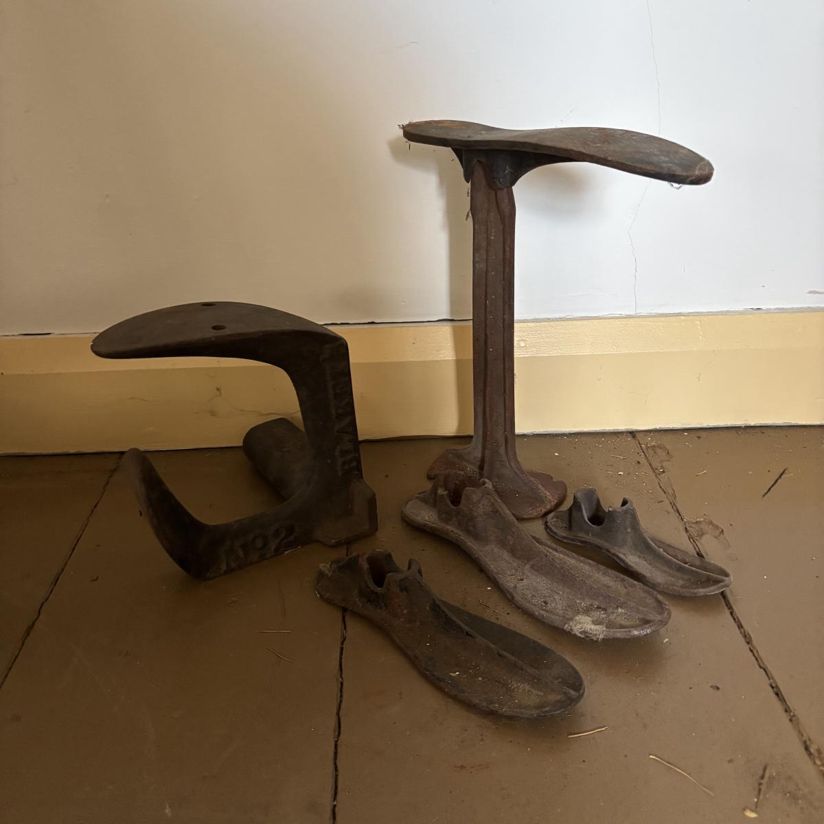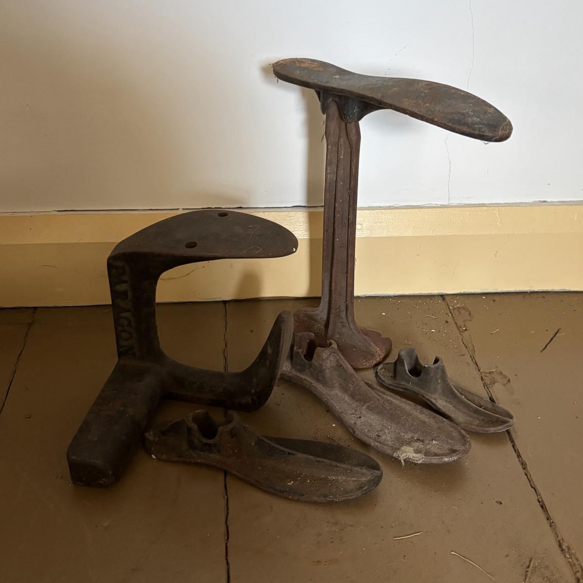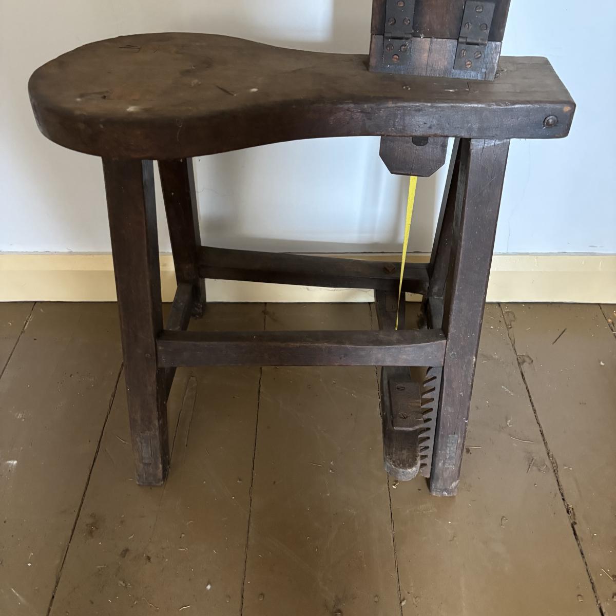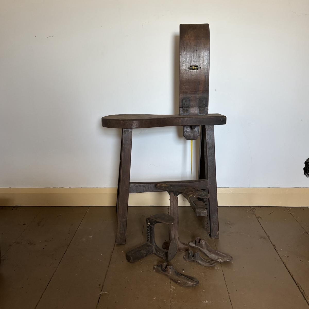 LOT 387: Early Antique Primitive Wooden Cobblers Tool Bench, Cobblers Anvil & Shoe Stand