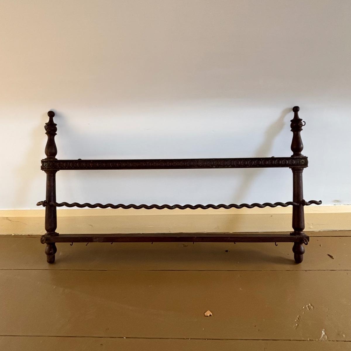 LOT: 410: Antique Wooden Plate & Cup Holder/ Spices Rack 40" in length