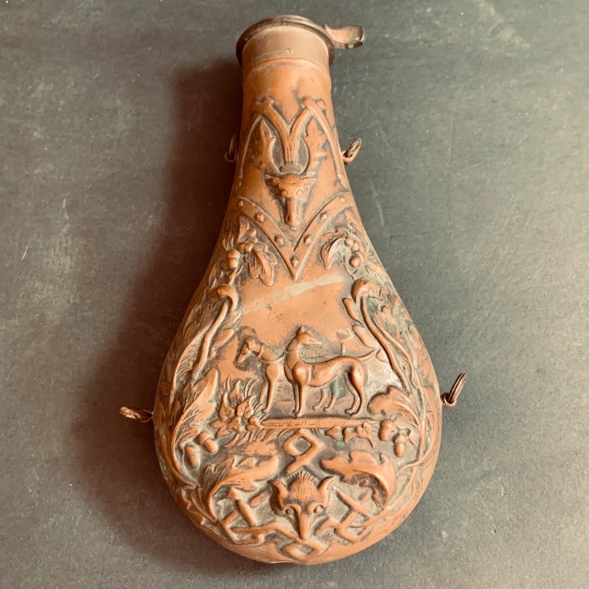 LOT 453: Antique Copper Powder Flask