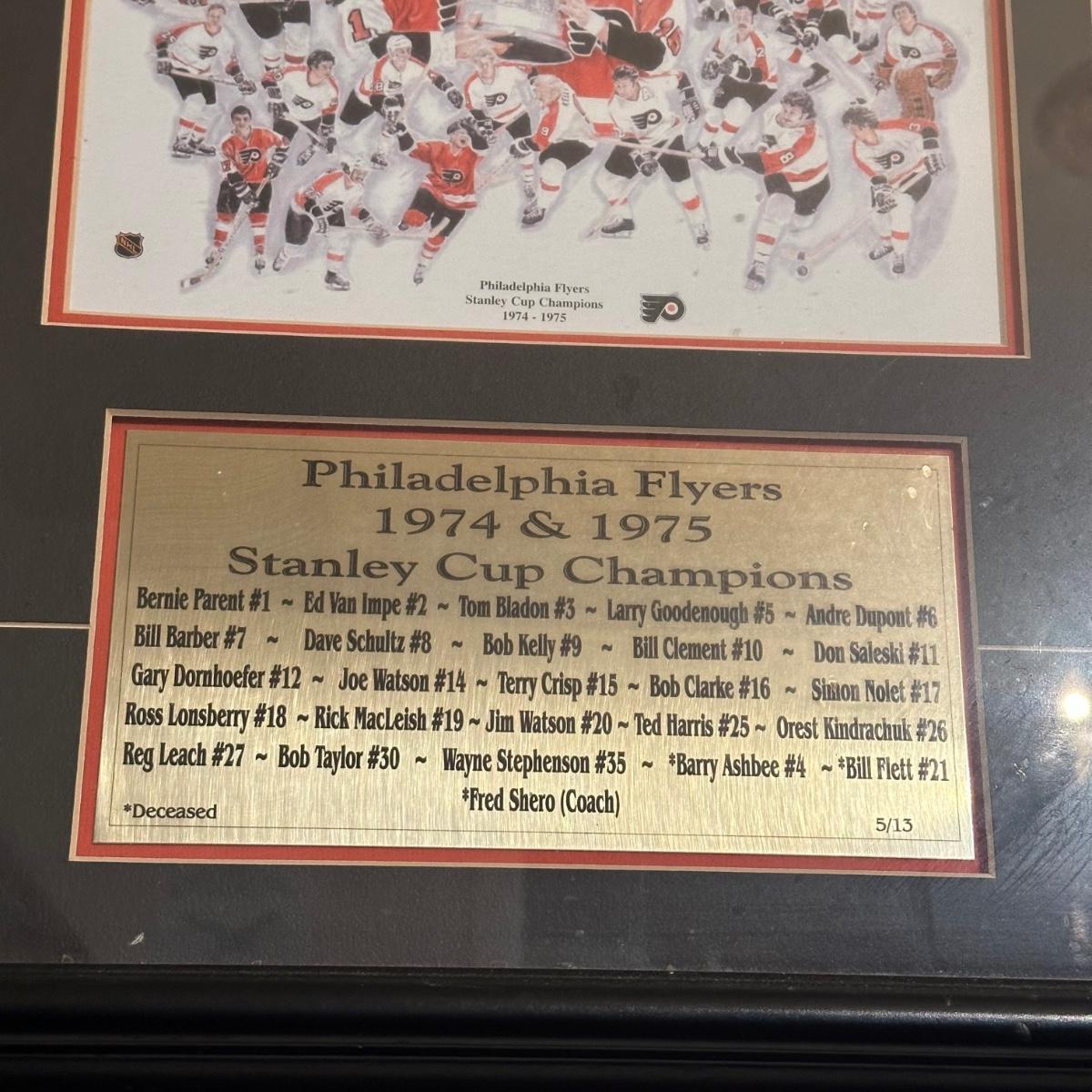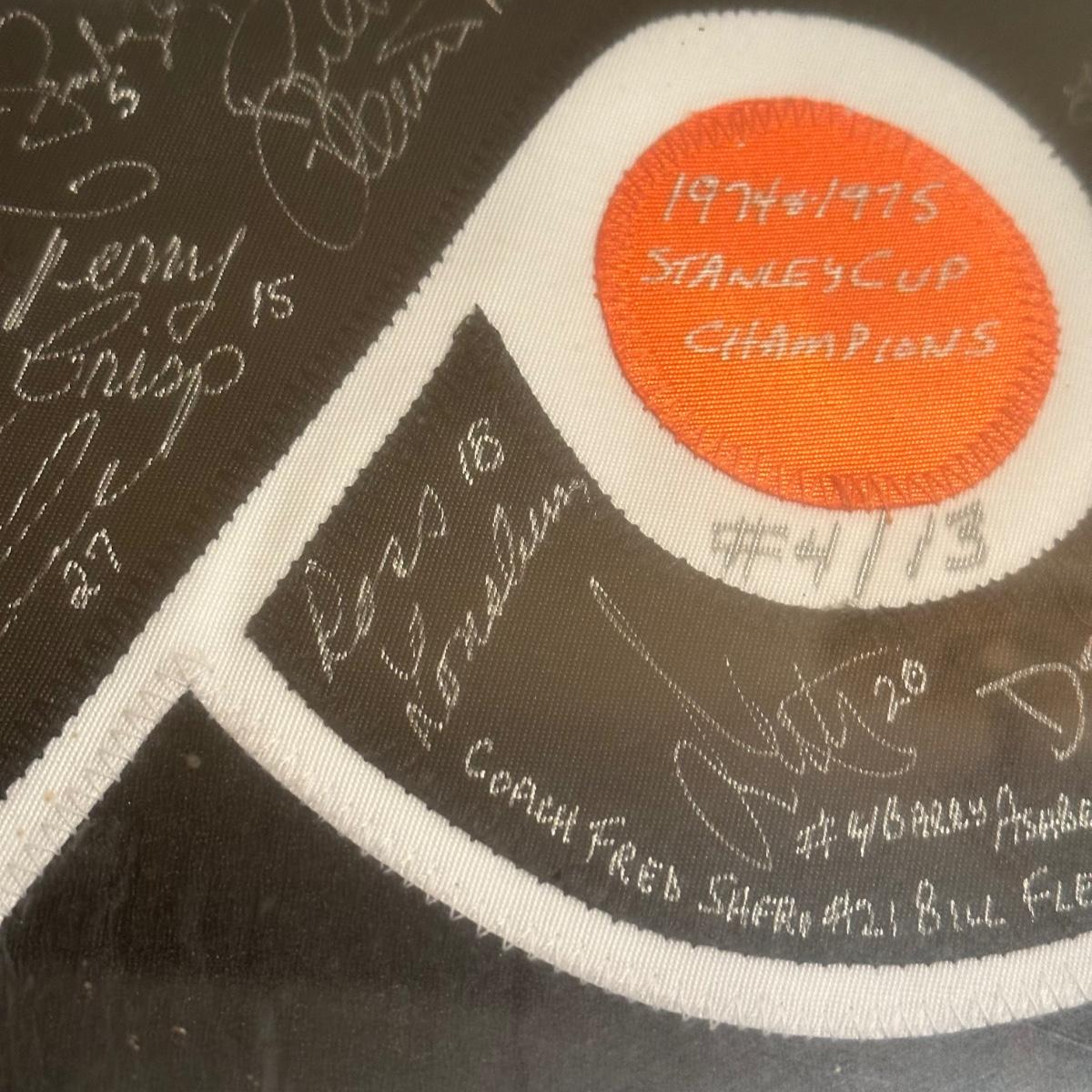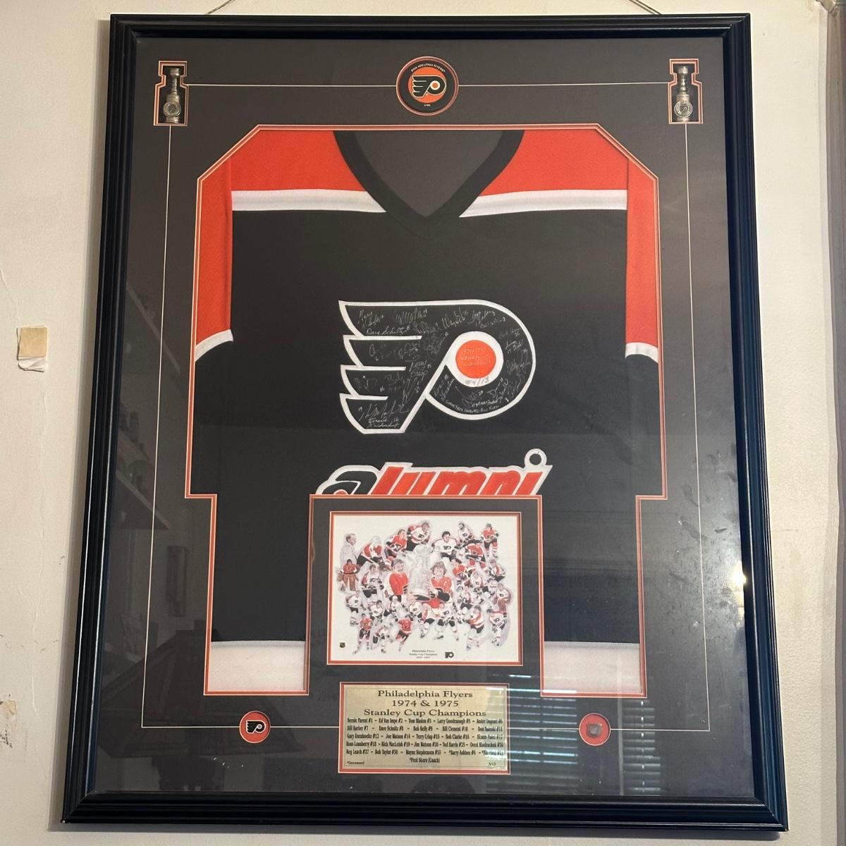 LOT 14D: Philadelphia Flyers 1974 & 1975 Stanley Cup Champions Signed & Framed Jersey