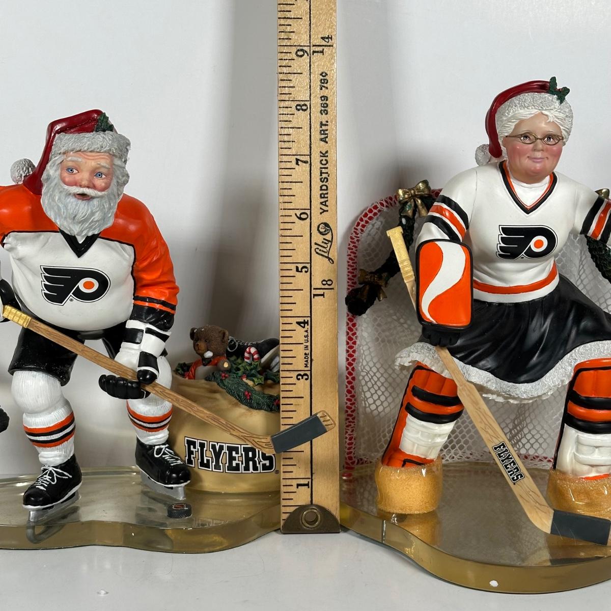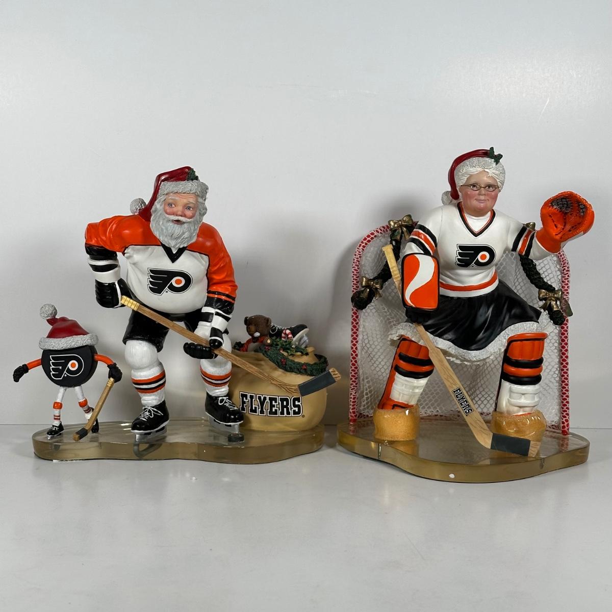 LOT 19D: The Danbury Mint Philadelphia Flyers Santa & Mrs Claus Figurines