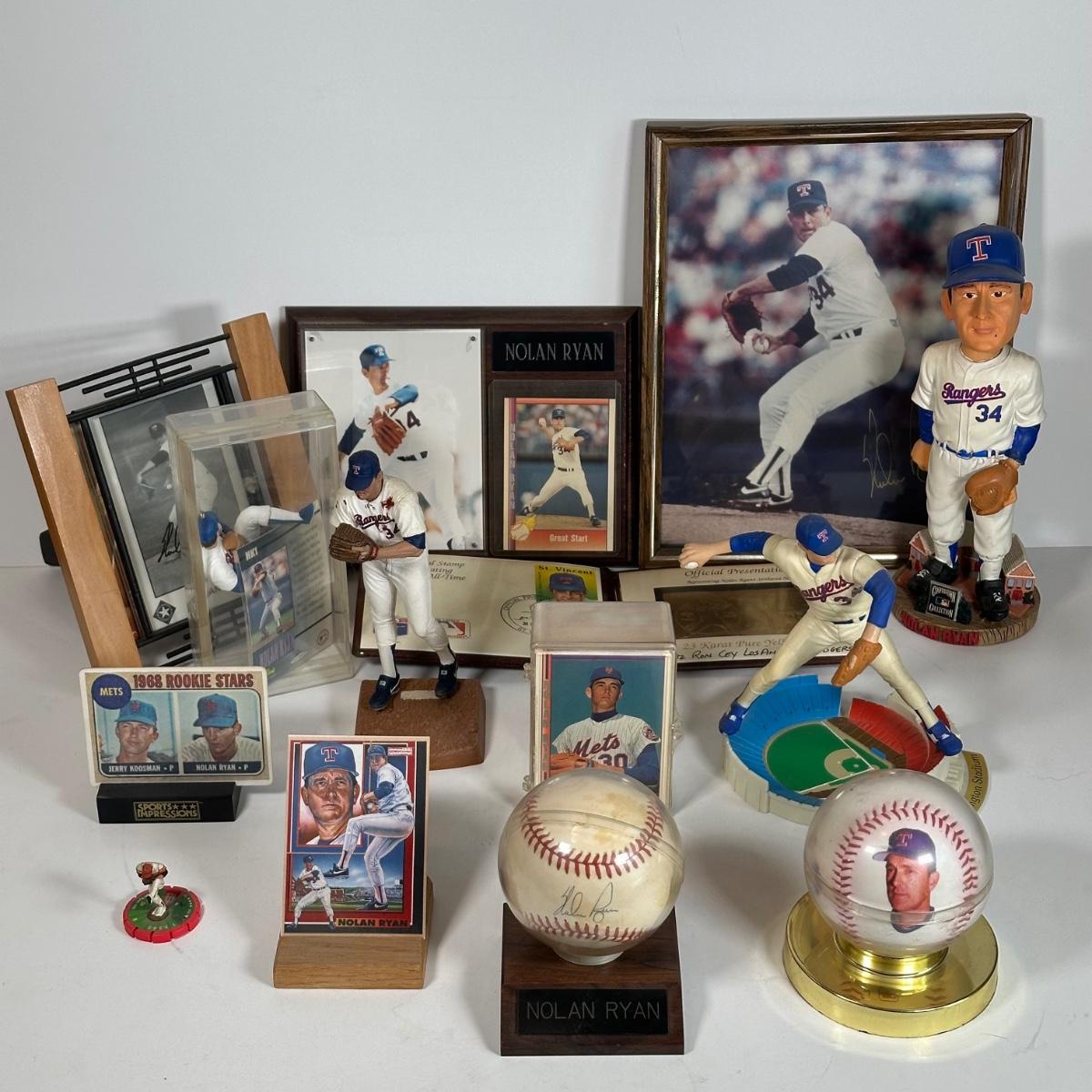 LOT 31A: Nolan Ryan Collection - Signed Ball and Pictures, Stamps, Cards & More