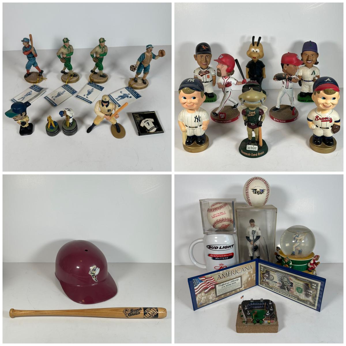 LOT 33A: Baseball Collectibles - MLB and Minor League - Balls, Figures, 2 Dollar Bill & More