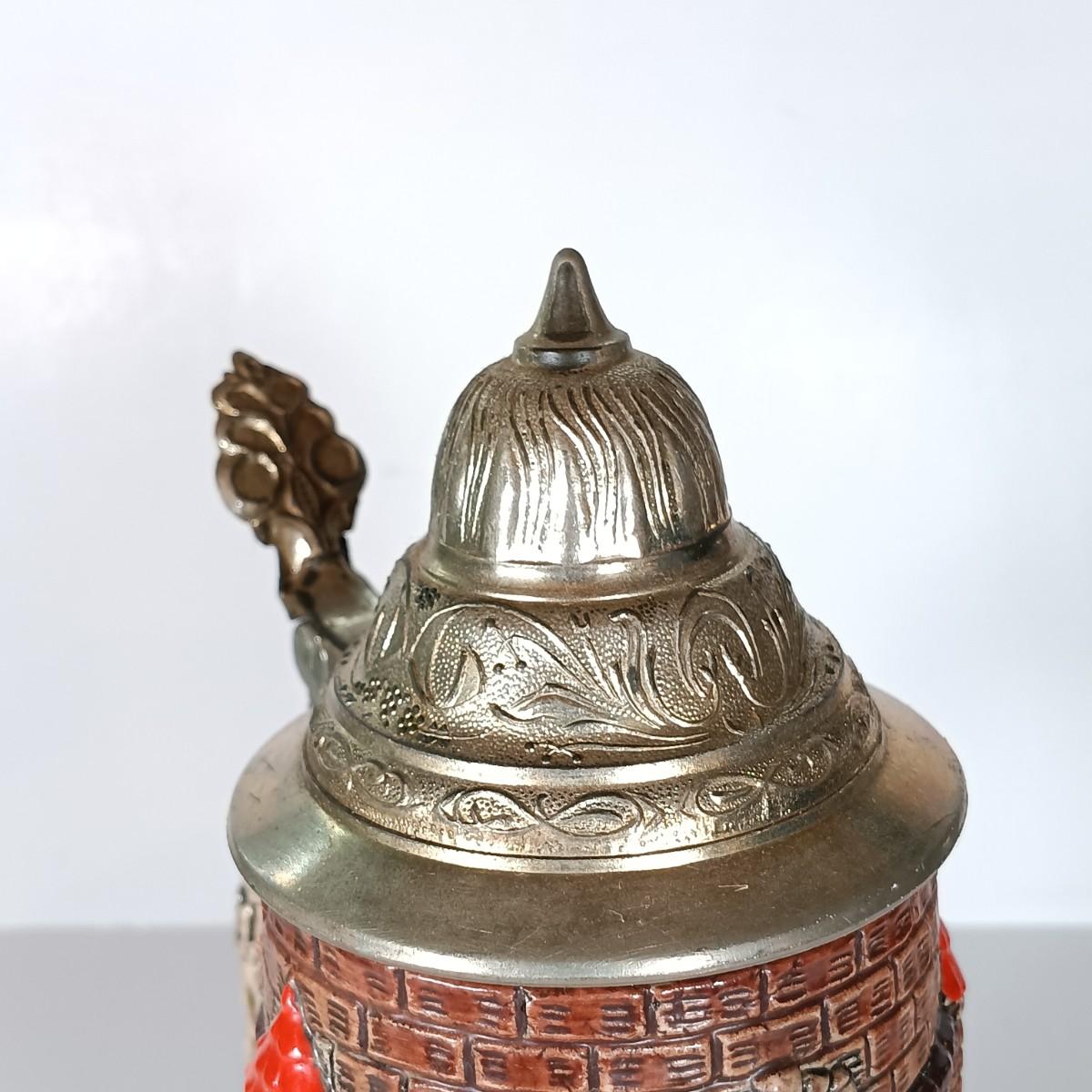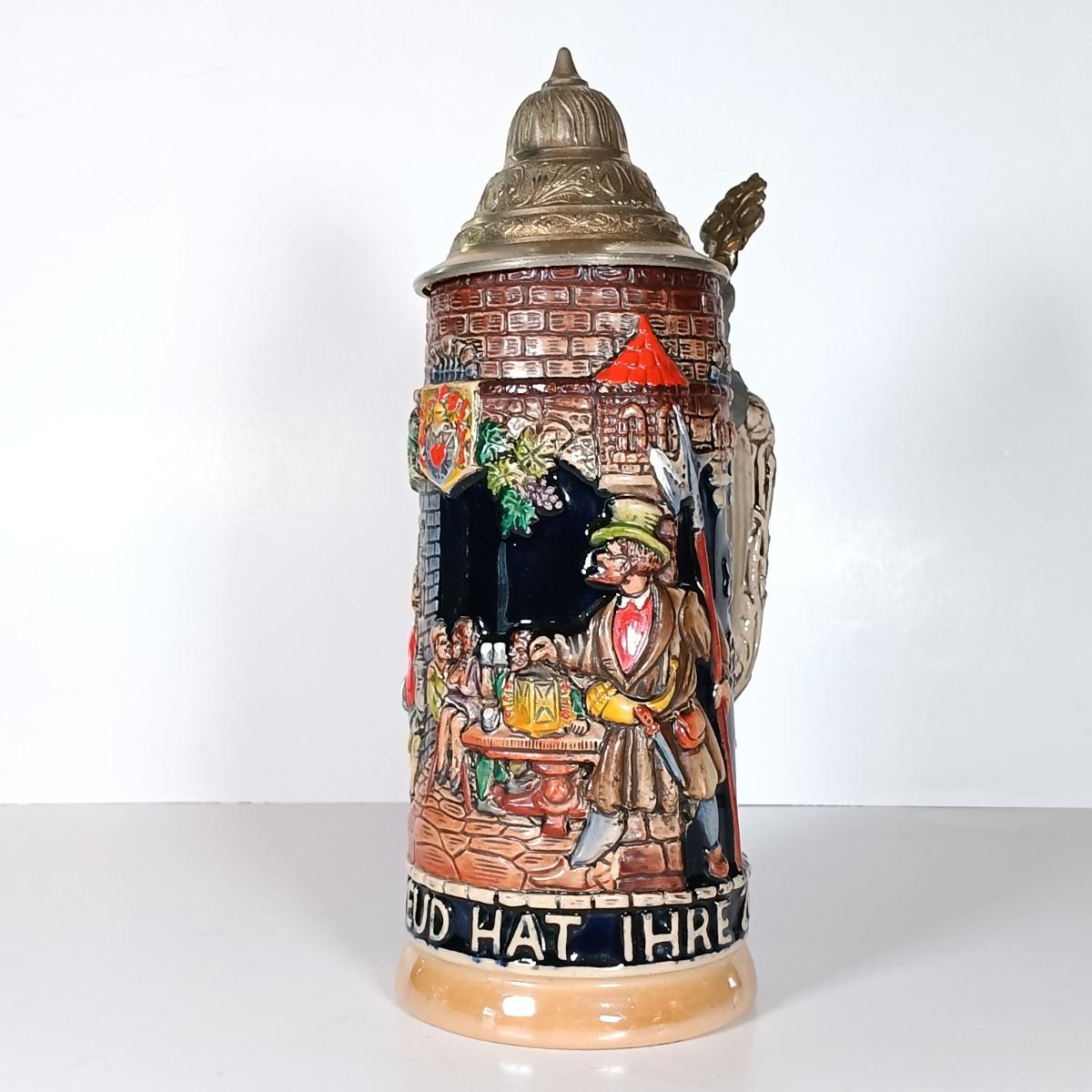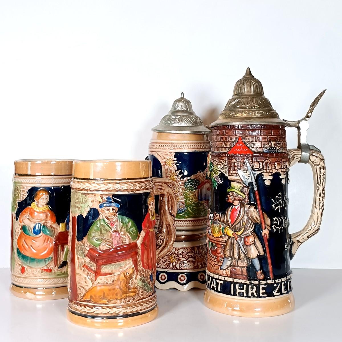 LOT 45D: Vintage West German Lidded Beer Stein, Mapsa Stein Music Box & Pair of German-Style Beer Steins