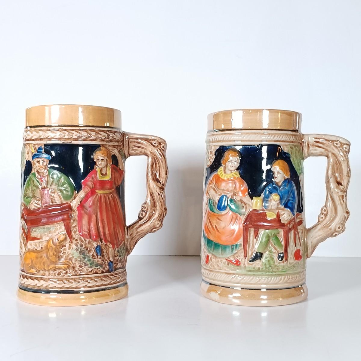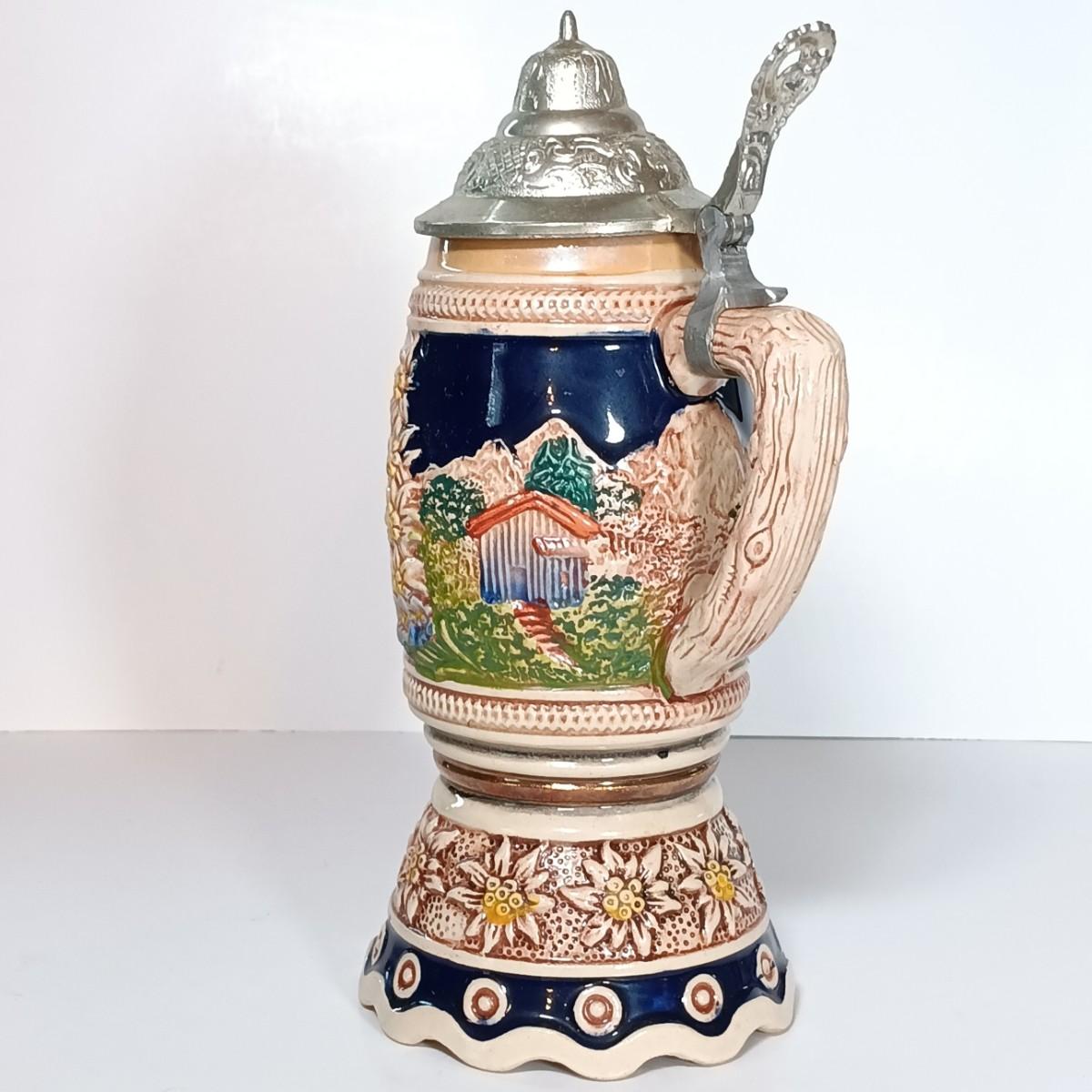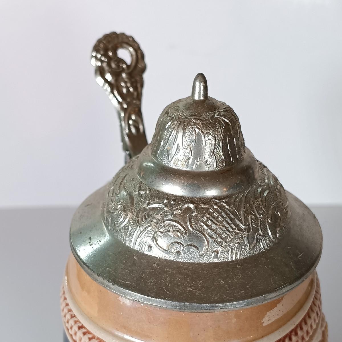 LOT 45D: Vintage West German Lidded Beer Stein, Mapsa Stein Music Box & Pair of German-Style Beer Steins