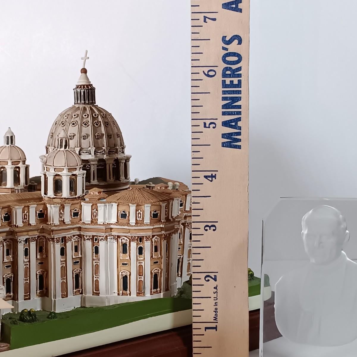 LOT 50D: Danbury Mint The Vatican St. Peter's Basilica Scale Model & Bohemia Glass Pope St John Paul II Paperweight