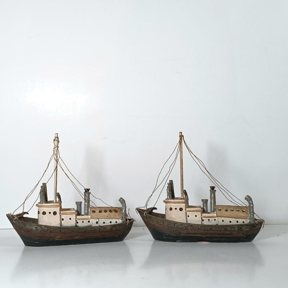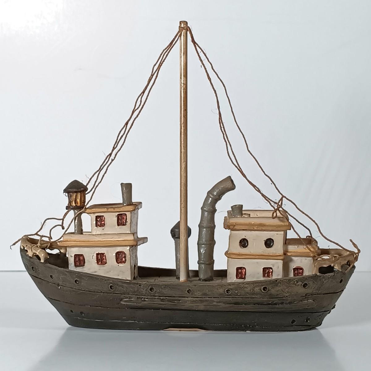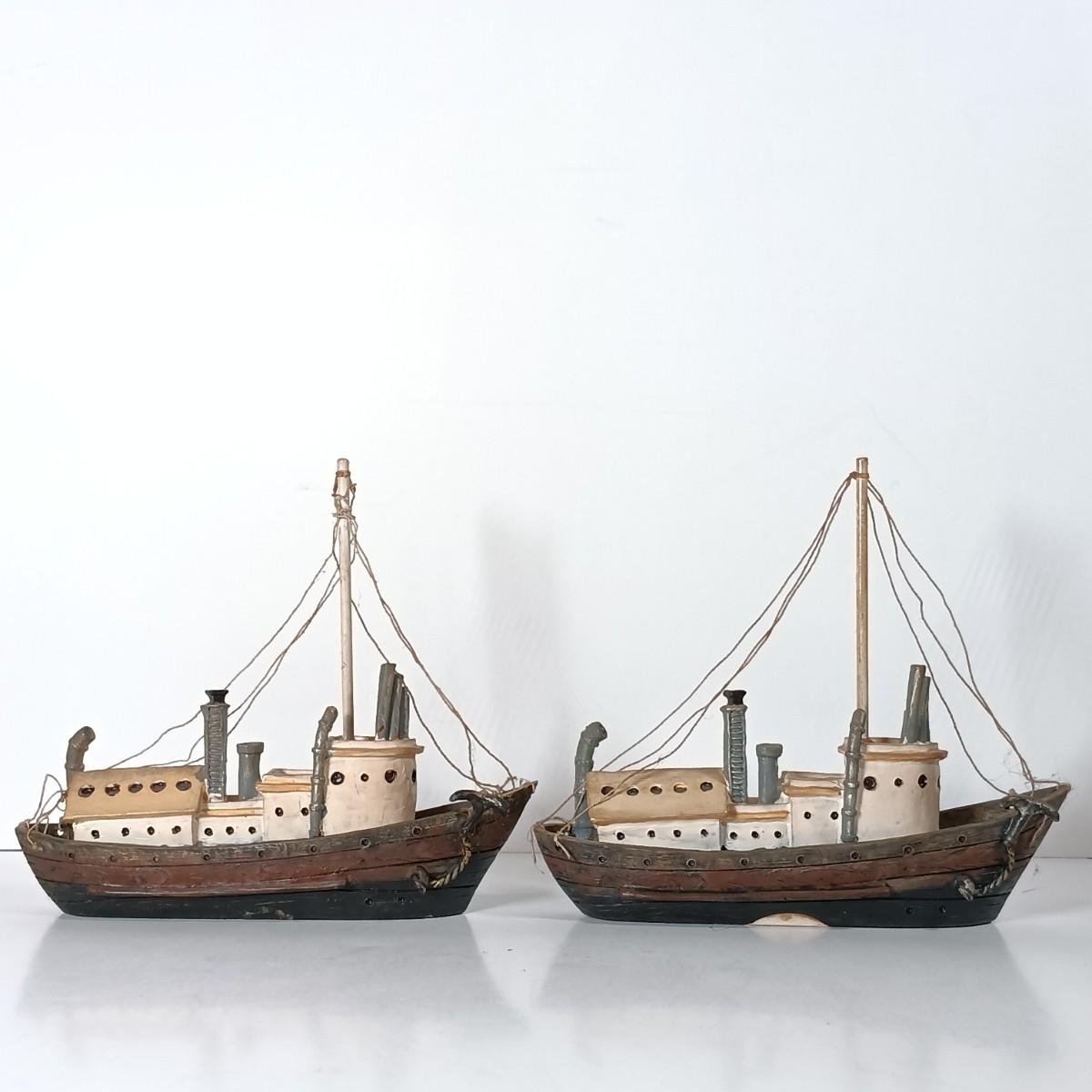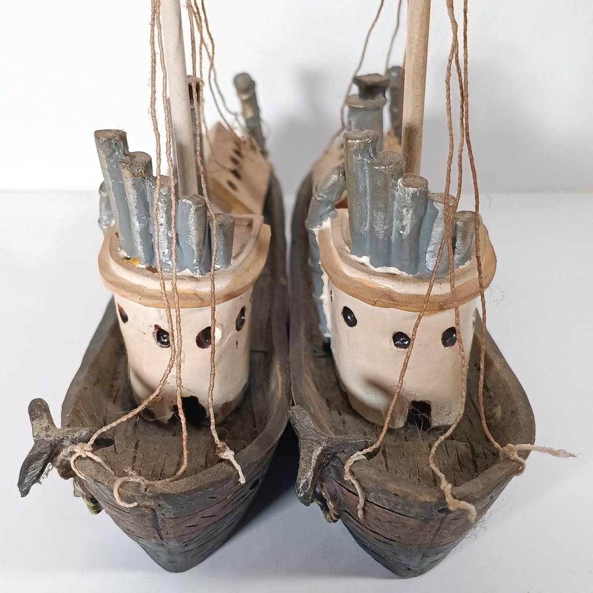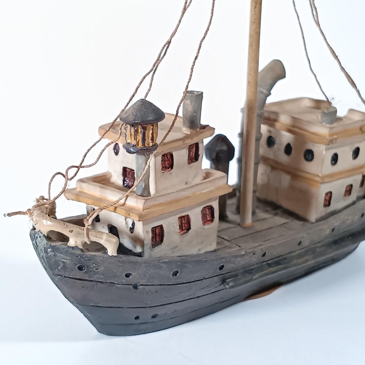 LOT 58D: Miniature Collectible Ships: Hard Resin Chesapeake Ship, Wood Confection Ship, Tybee Island Wood HMS Bounty & More