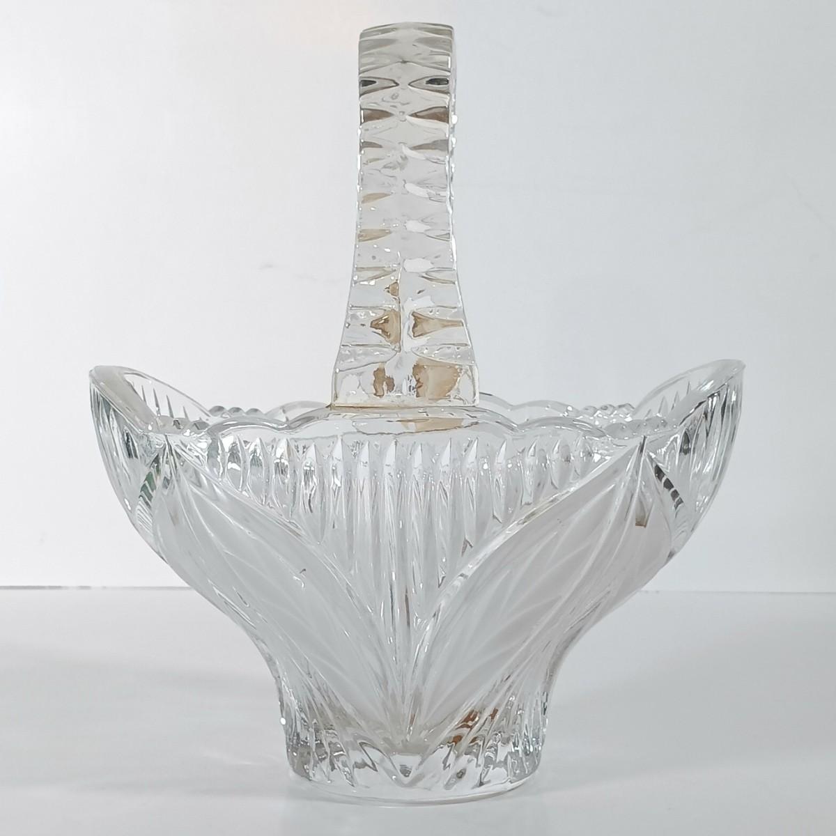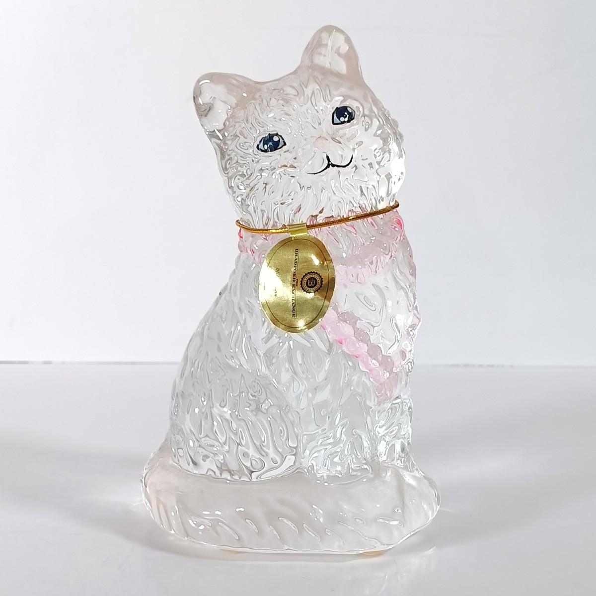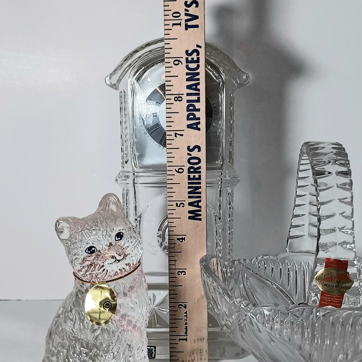 LOT 59D: West German Crystal Clock, Anna Hütte Crystal Basket & Bradford Exchange Sophisticats 'Sparkle' Cat Figurine