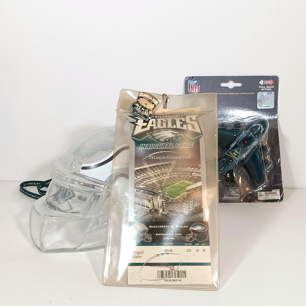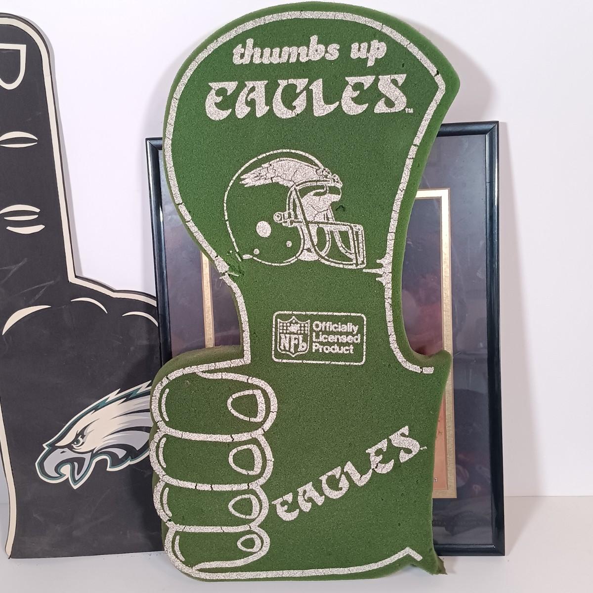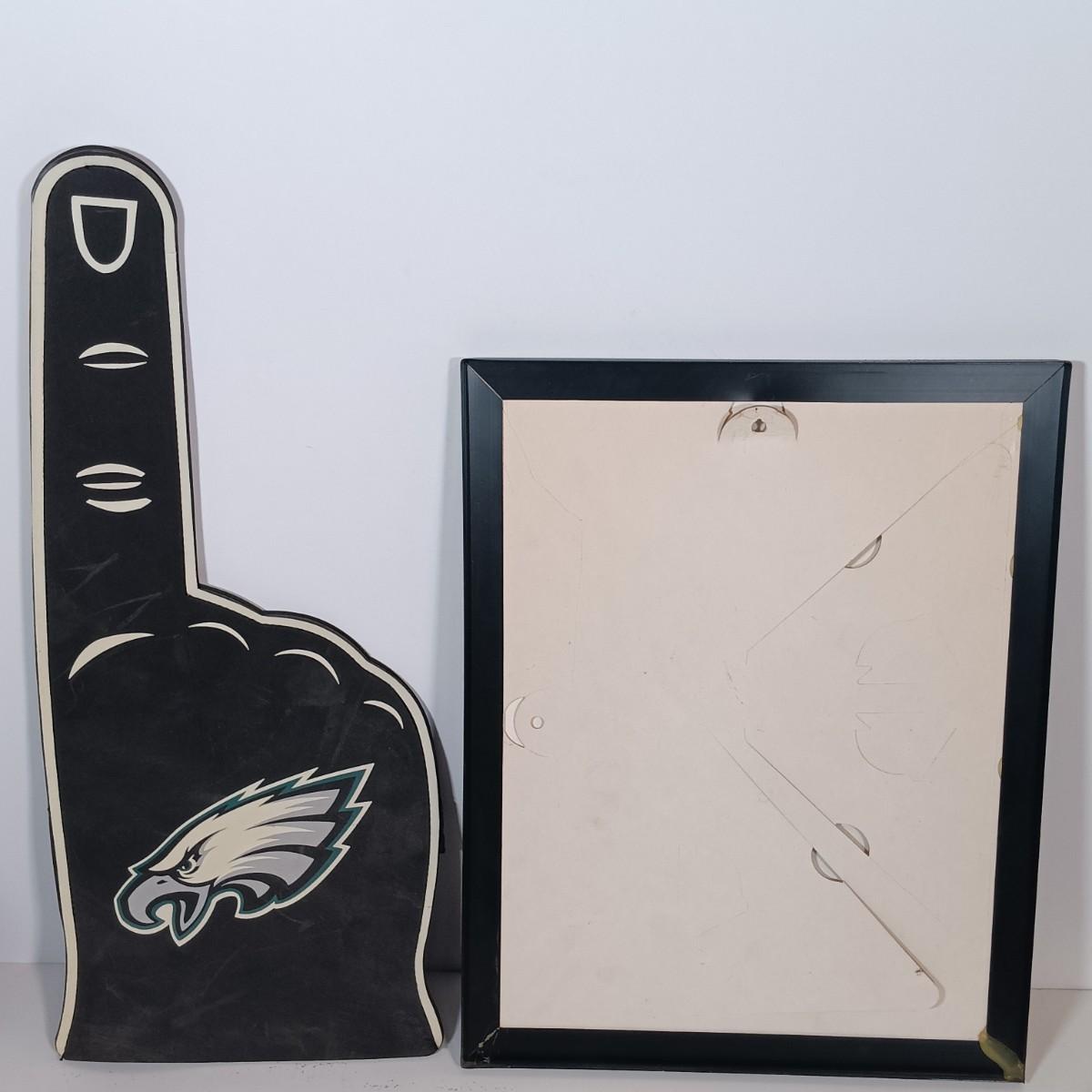 LOT 79B: Vintage Philadelphia Eagles Wall Plaque, Fred Dingler Signed Print, Gemmy Rockin' Randall Doll & More