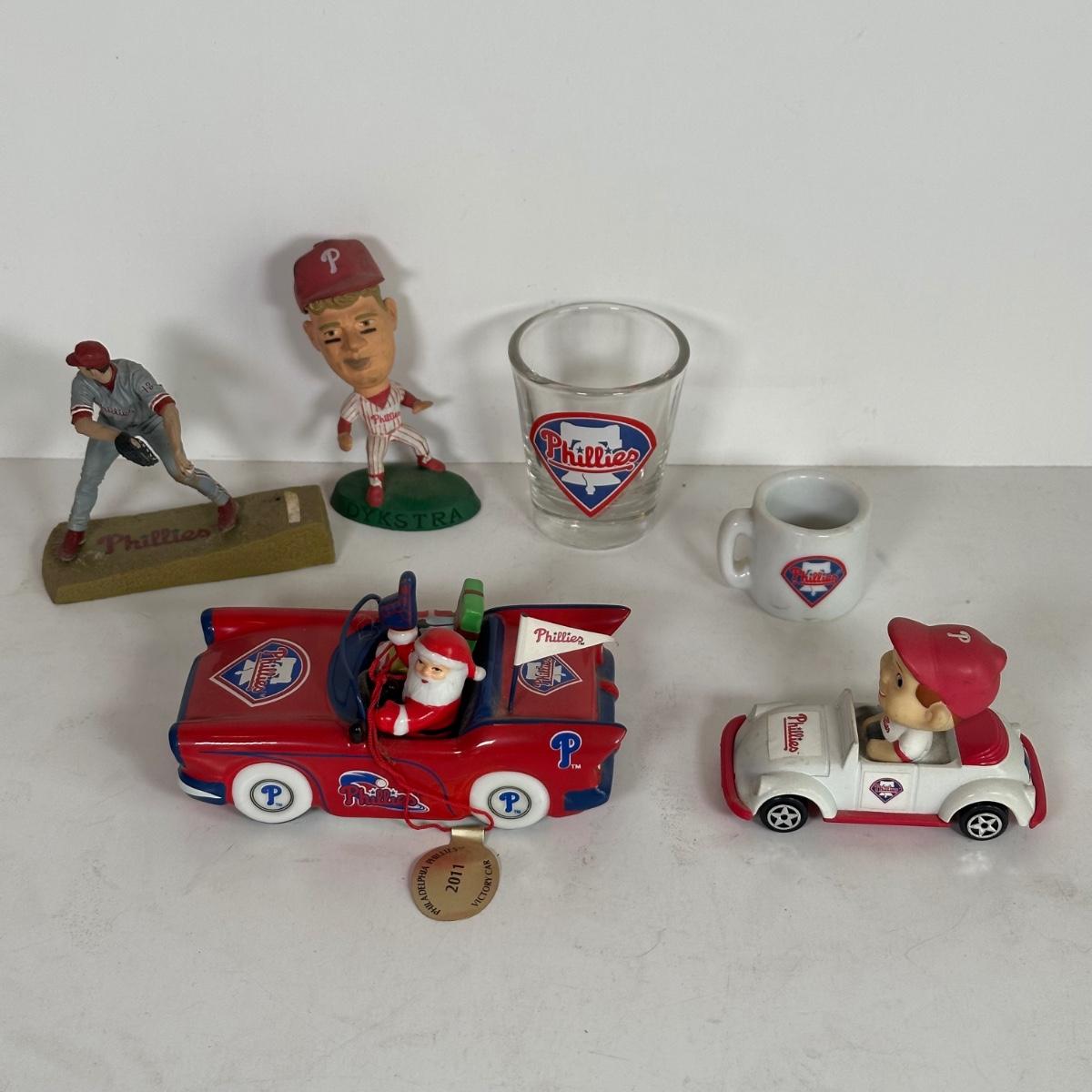 LOT 91A: Philadelphia Phillies Collectibles - Ornaments, Figures, Bobble Heads & More