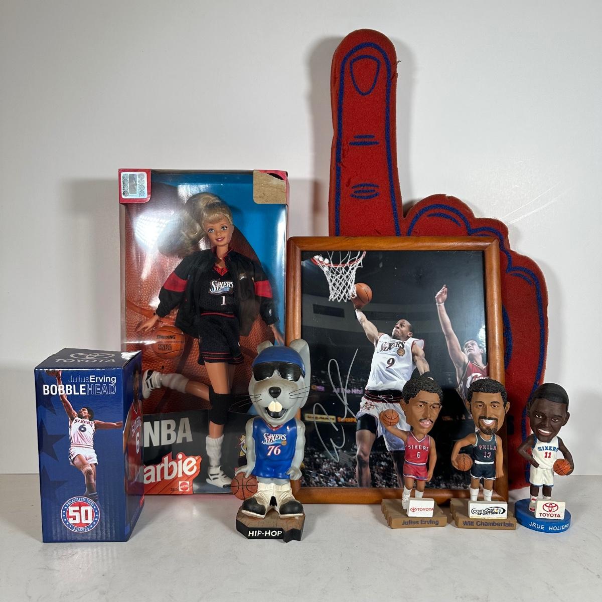 LOT 106A: Philadelphia 76ers Collection - Signed Andre Iguodala Photo, NBA Barbie, Bobbleheads & More