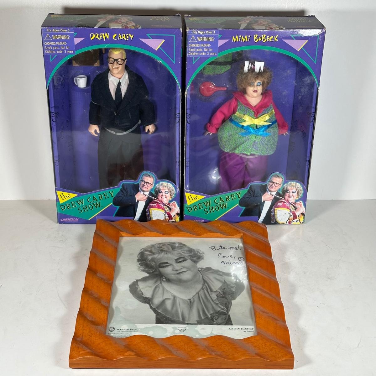LOT 112A: Vintage Drew Carey & Mimi Bobeck Dolls NIB & Signed Photo