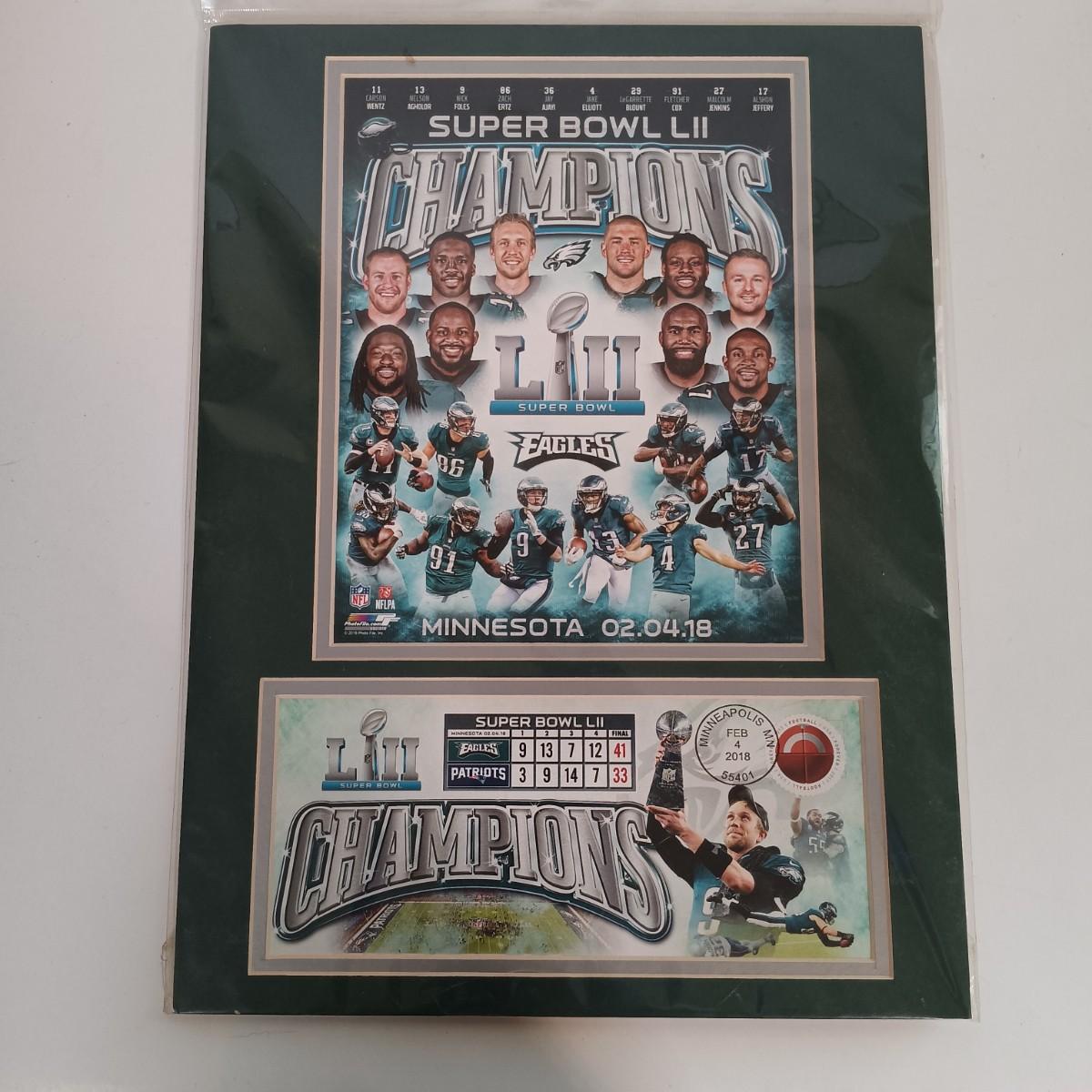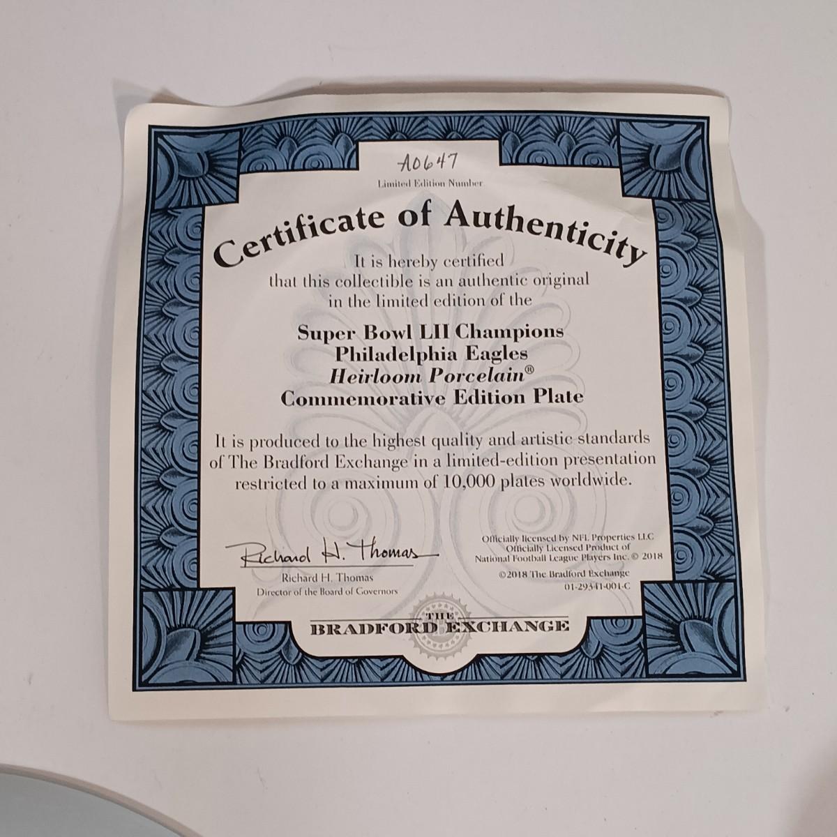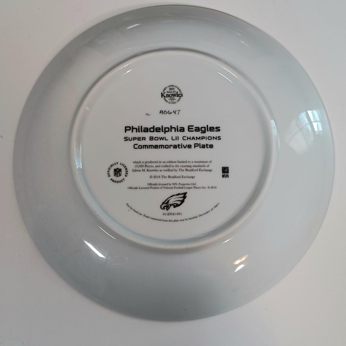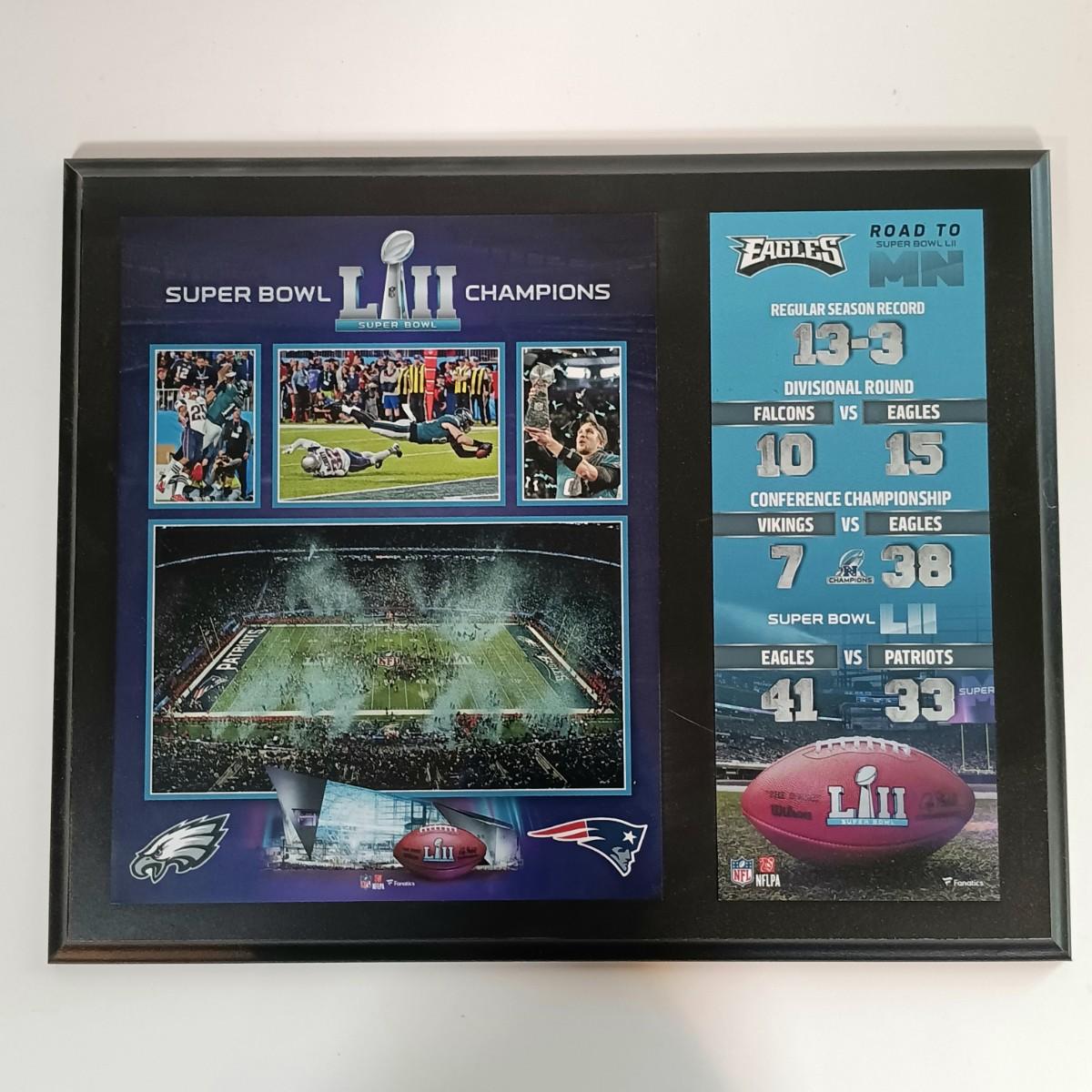 LOT 123B: Eagles Superbowl LII Wall Art w/ Collectible Plate and Resin Football