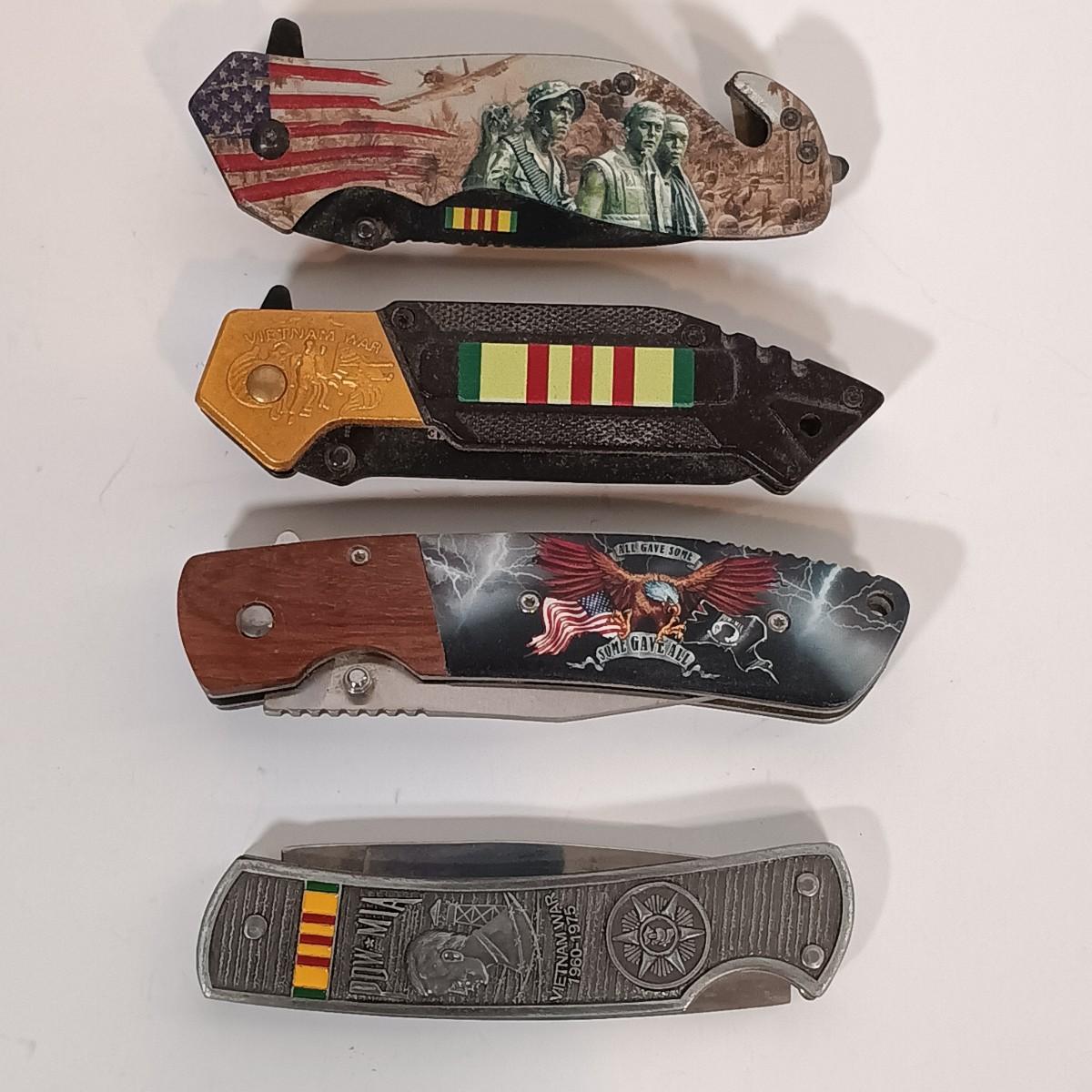 LOT 126B: Set of (4) Commemorative Militaria Folding Knives