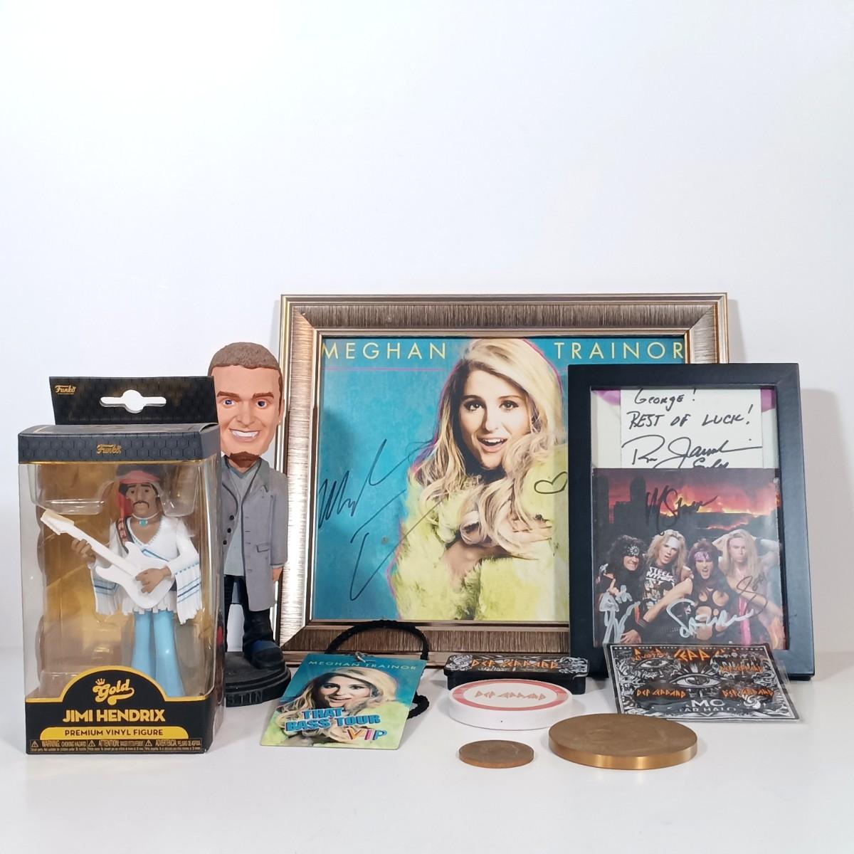 LOT 131B: Autographed Meghan Trainor Photo, Autographed Steel Panther Photo, Harry Chapin Bronze Coins & More