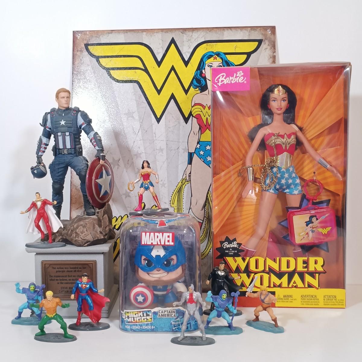 LOT 133B: Marvel Earth's Mightiest Edition 12" Captain America Figurine, Mattel DC Mini Figurines, Wonder Woman Barbie & More