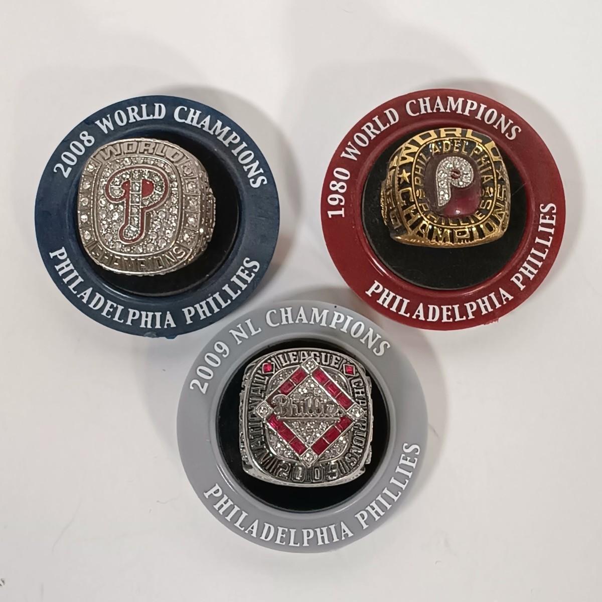 LOT 136B: Set of (3) Phillies World Champions and NL Champions Replica Rings