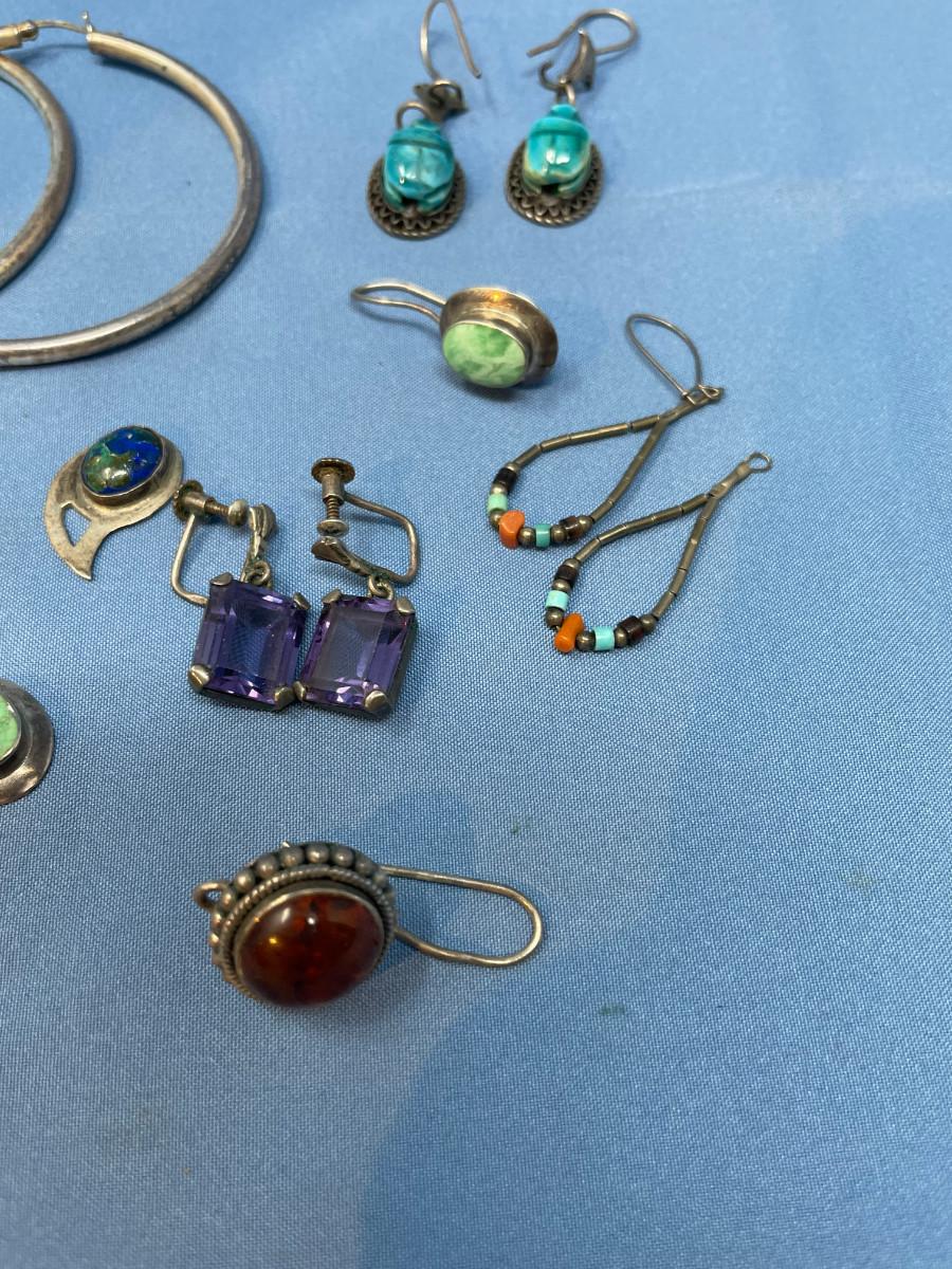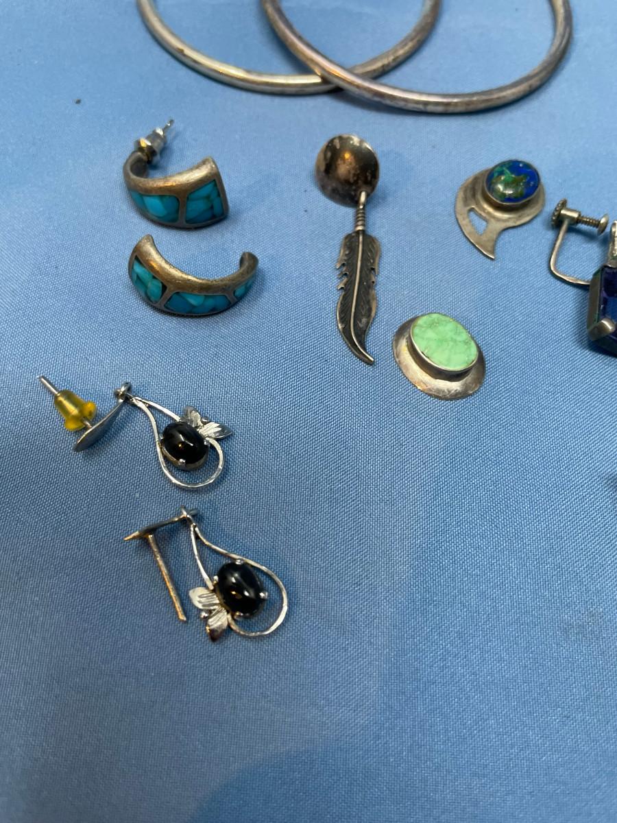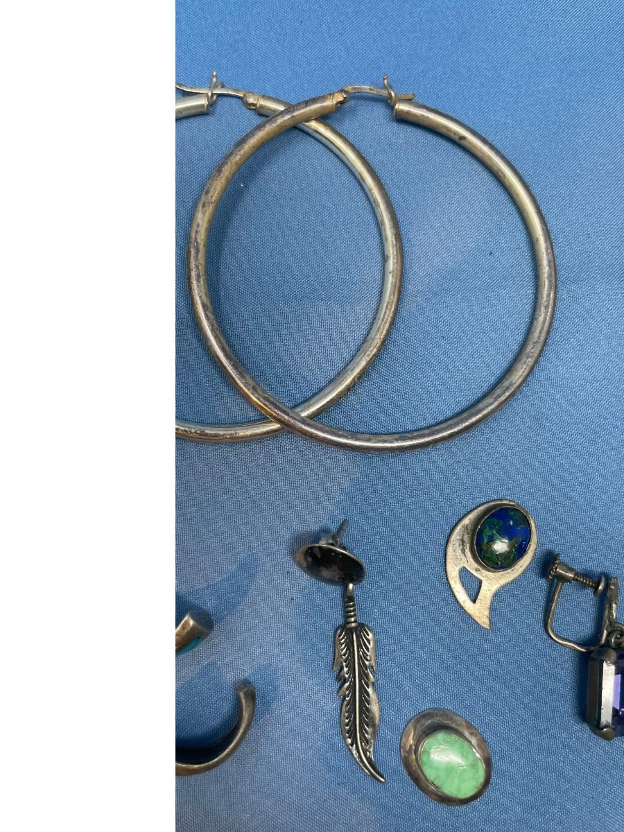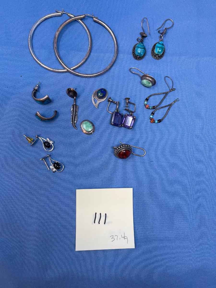 37.4 grams total weight. Take a good look, some need repair, some are singles, or don't quite match. Still some great silver pieces to repurpose!