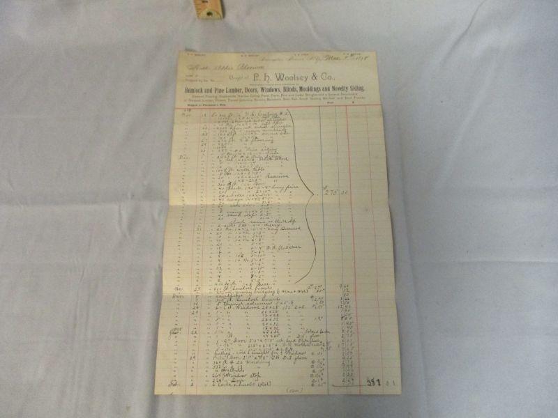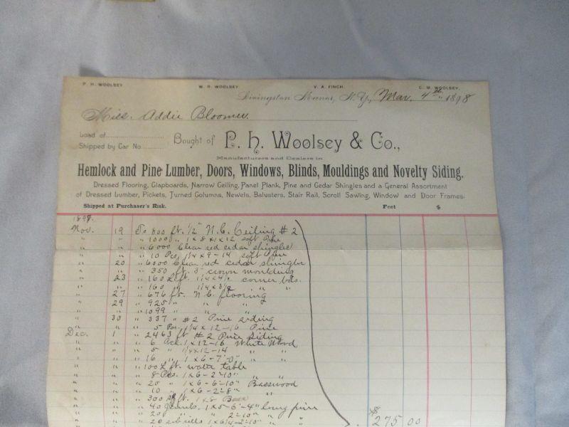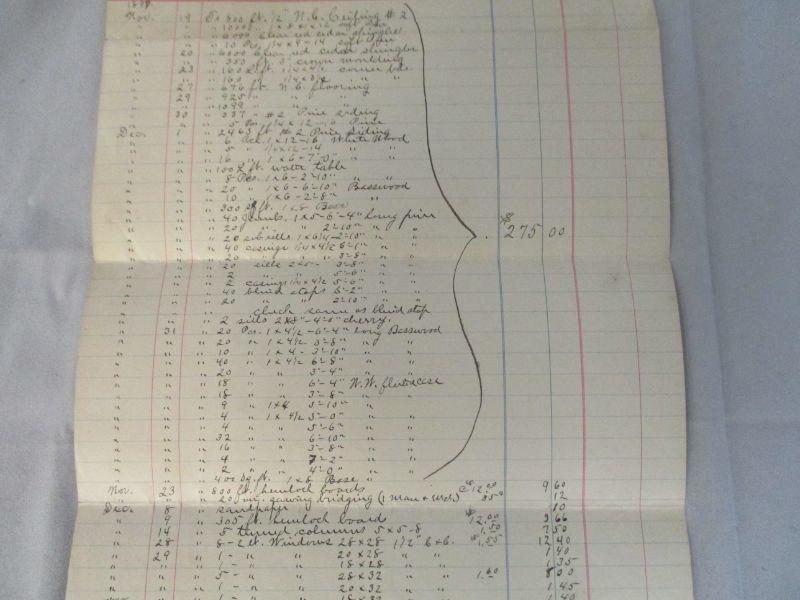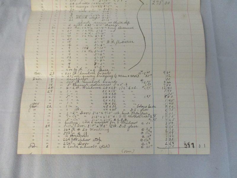 I was told that this was the detailed list of everything that was purchased to build a house from the ground up. It begins in November, 1897 and tracks the purchases through February, 1898. The total cost - $3,612. It appears to be from Livingston Manor, NY.