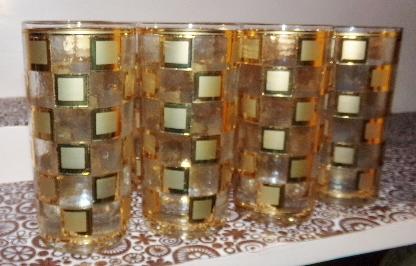 THESE ARE GREAT LOOKING RETRO CHECKERED DRINKING GLASSES IN VG CONDITION 7 COUNT