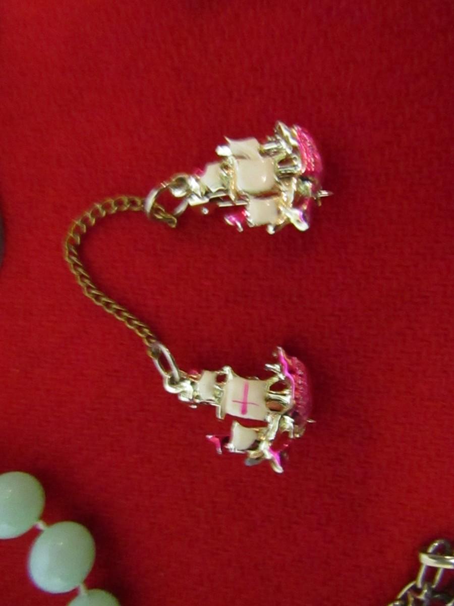 NECKLACES, PIERCED EARRINGS, SMALL AVON RING, BROOCHES, BRACELETS