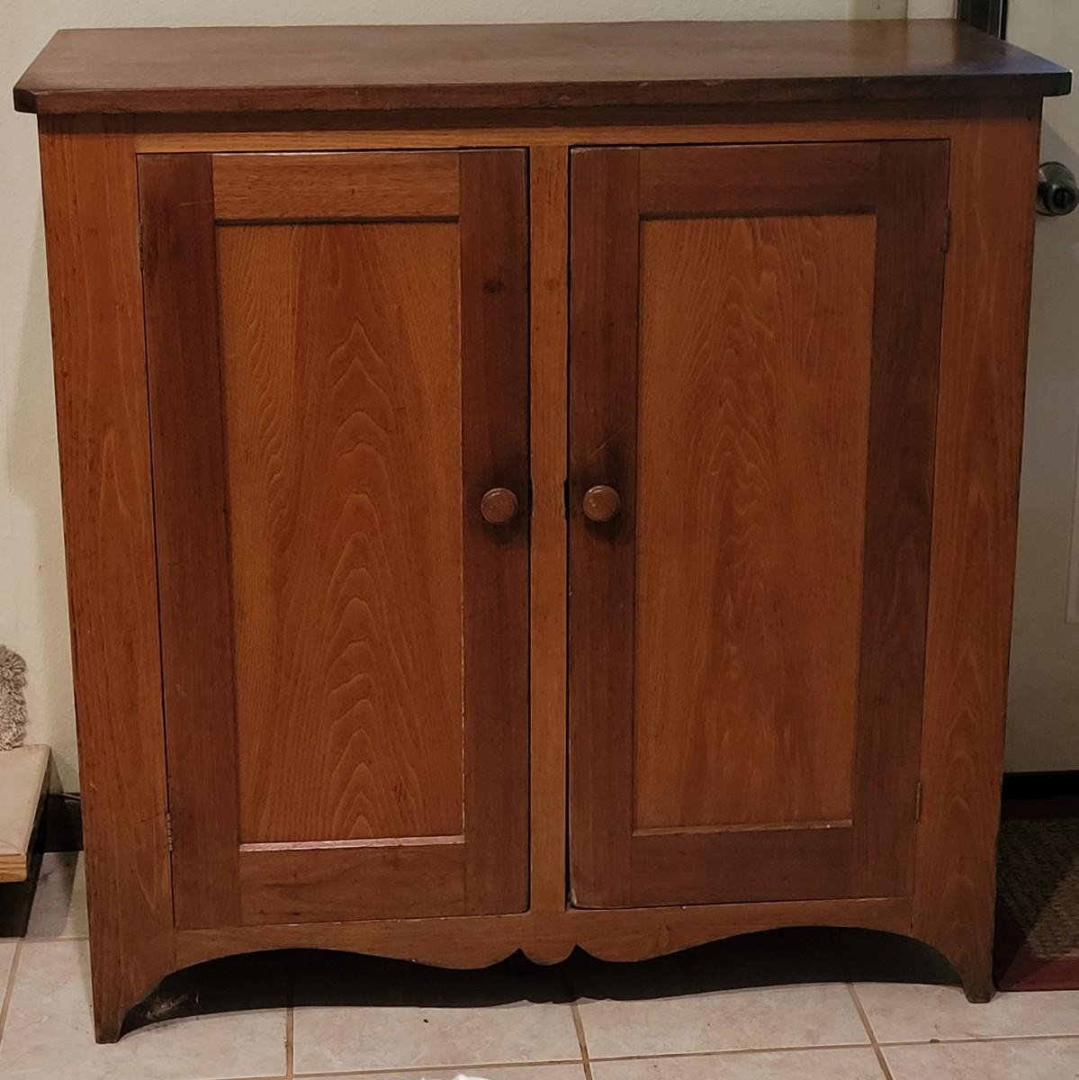 Lot 111: Antique Linen Cabinet with Walnut & Maple Wood
