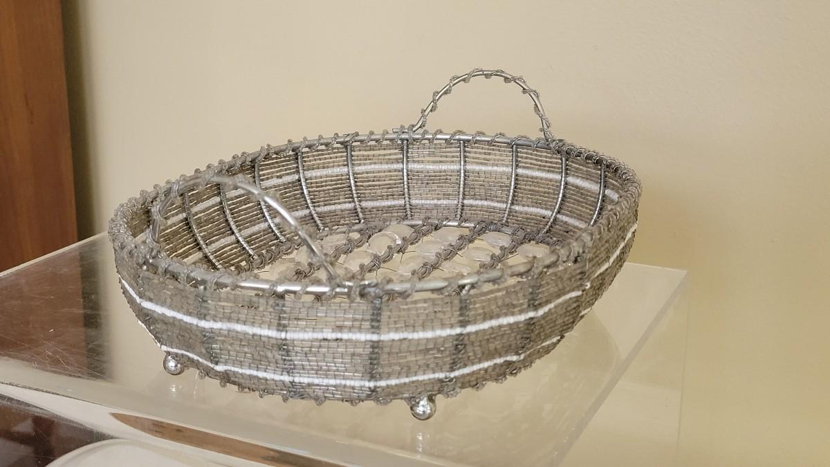 White Metal and Crystal Candleholder and Silver Metal and Crystal Basket