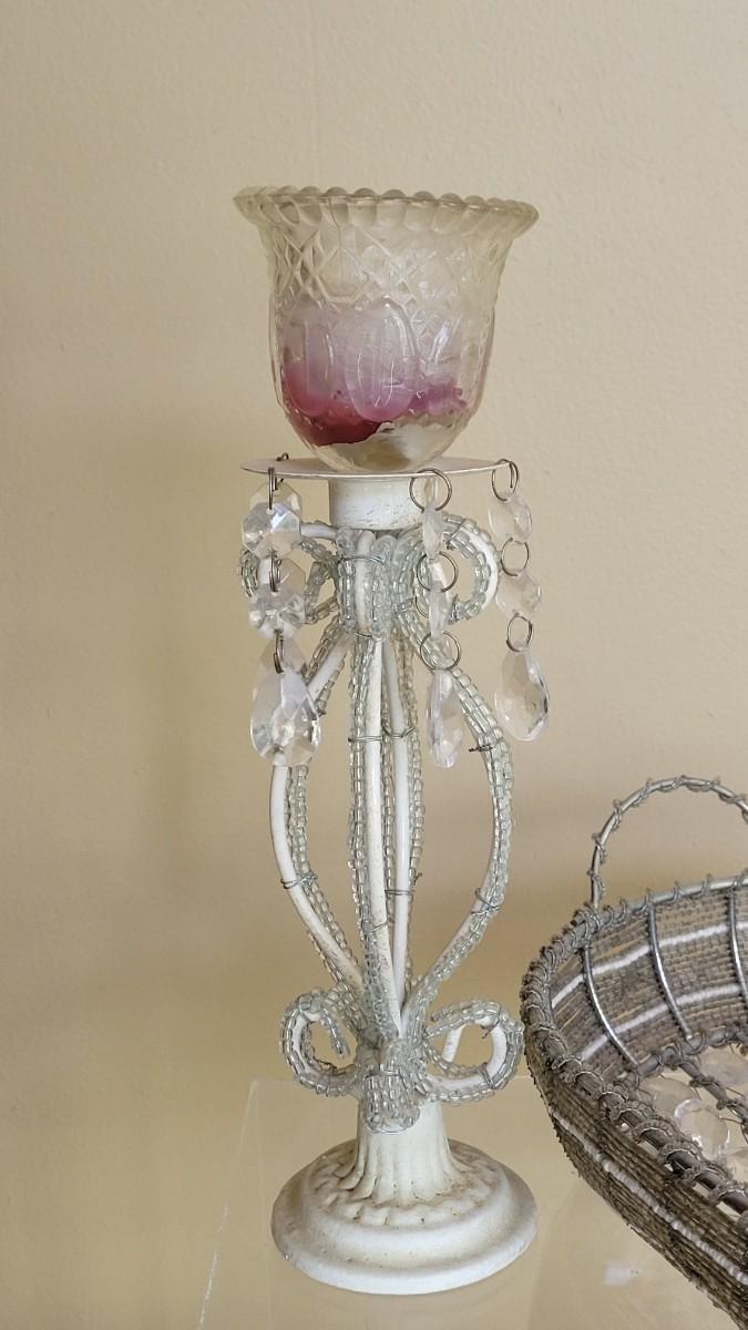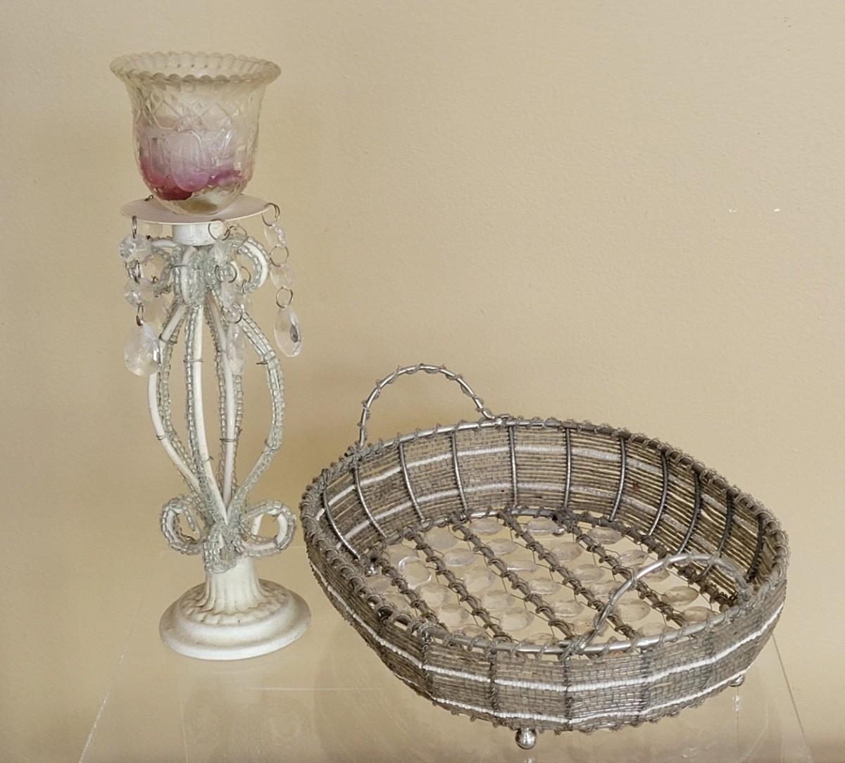 Lot 111: Crystals And Metal Candleholder and Crystal & Metal Basket