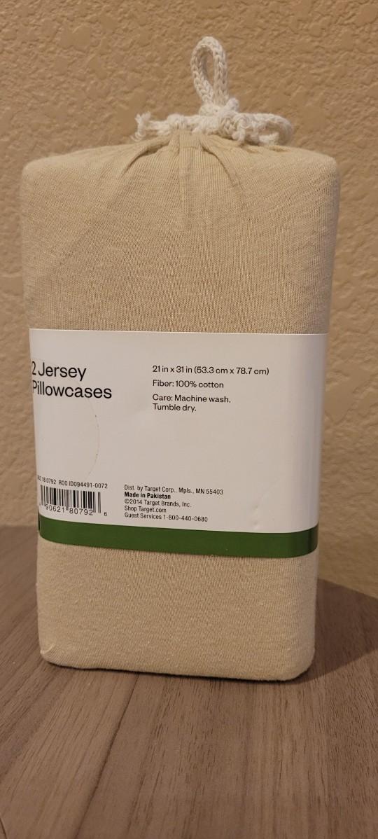 New Package of Jersey Style Pillowcases never used Size Standard.