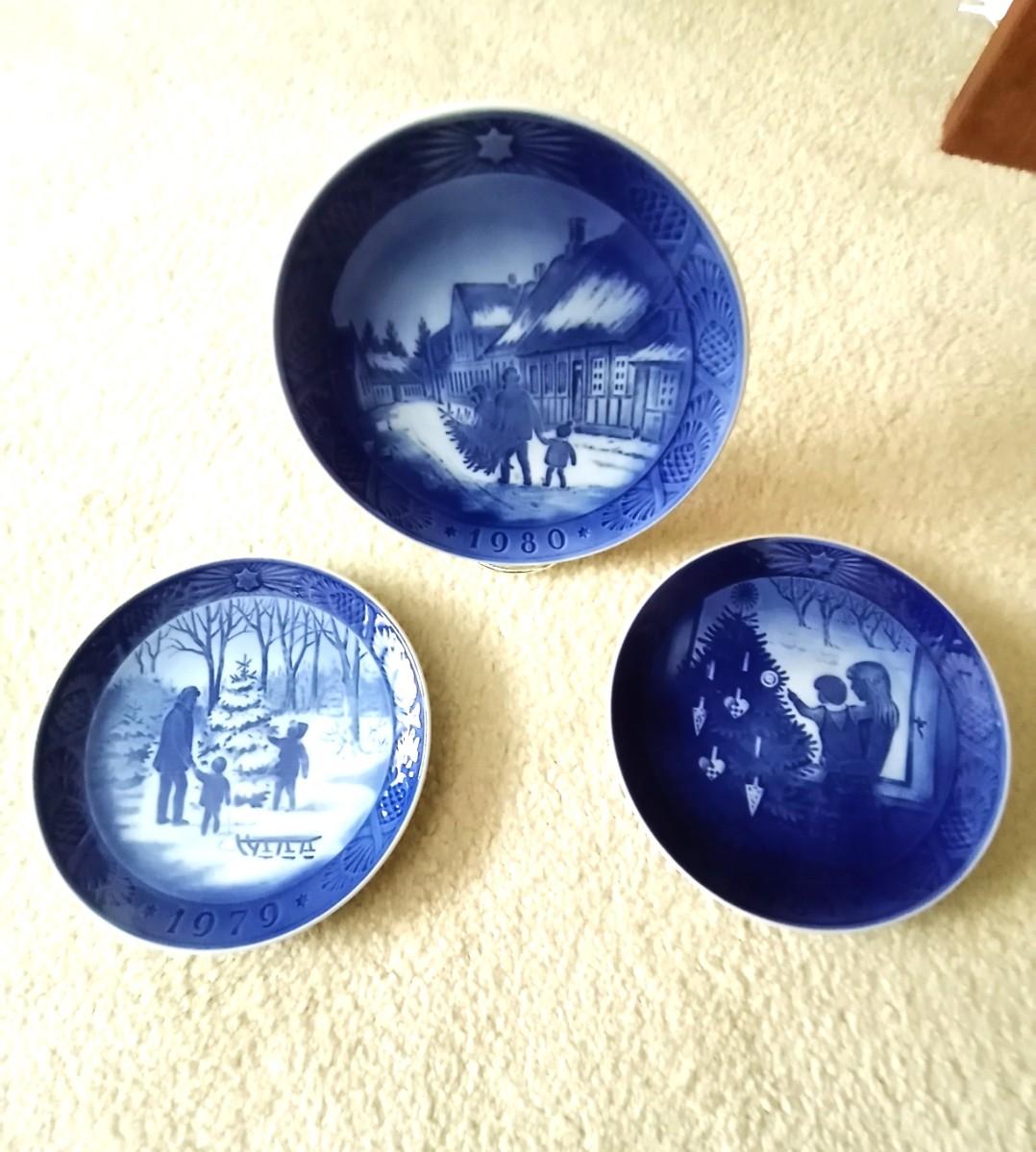 THREE CHRISTMAS CHINA PLATES 1979 AND 1980