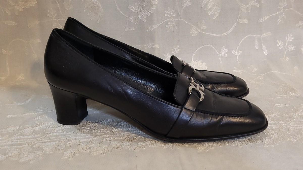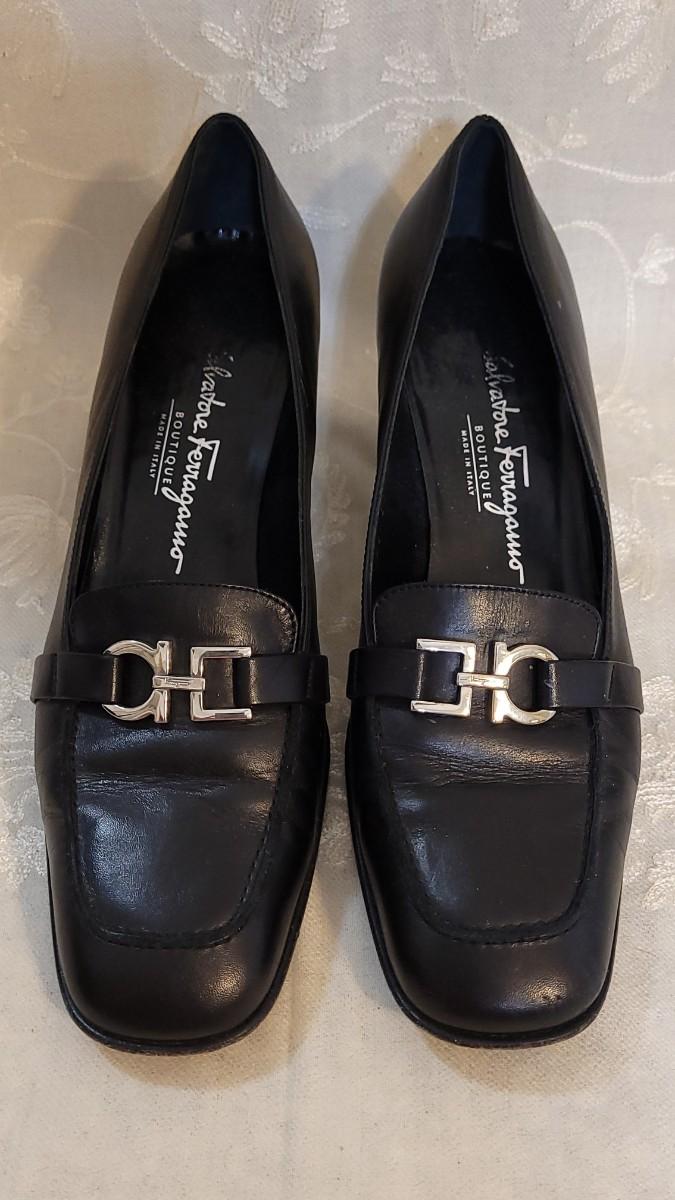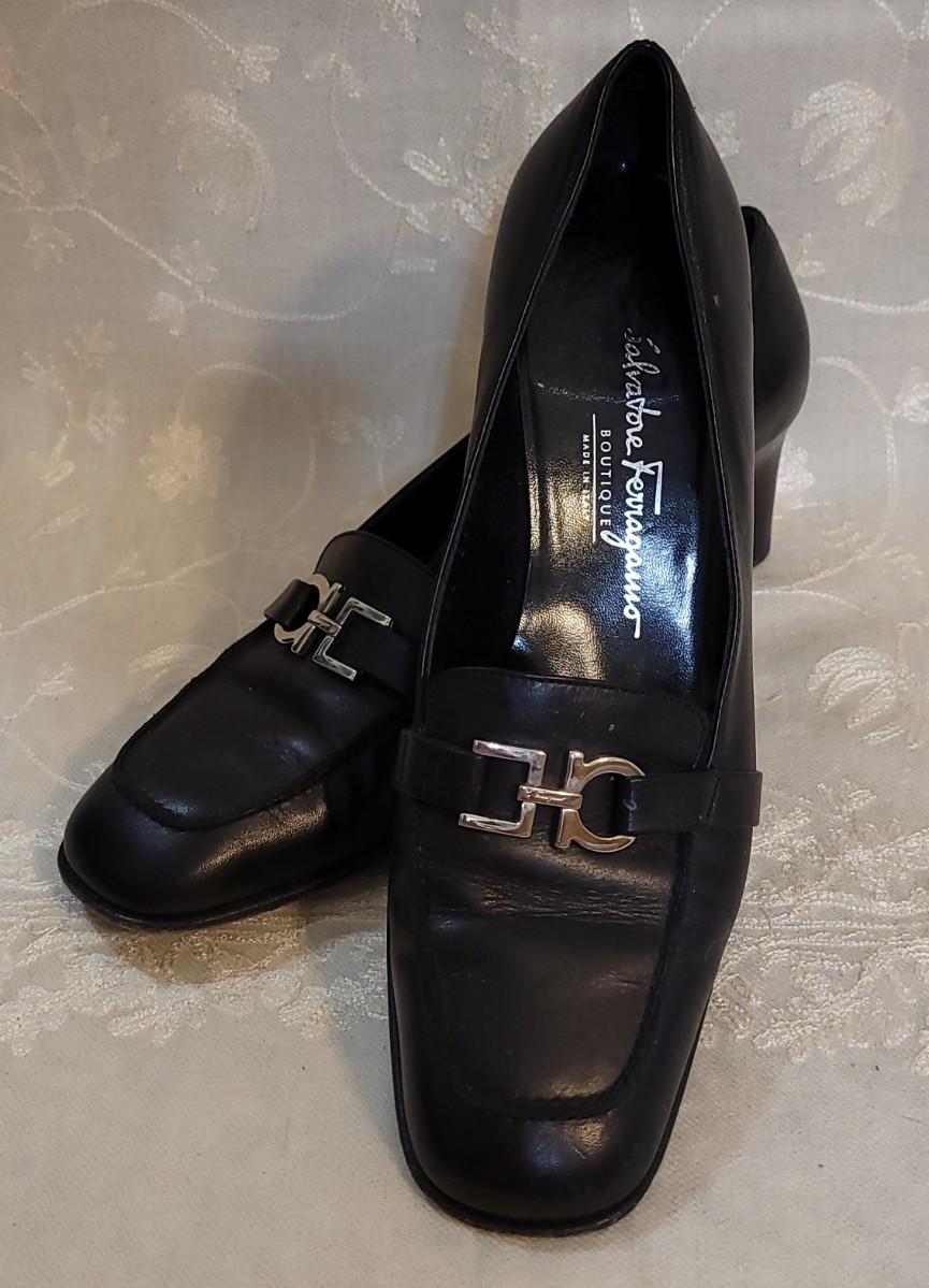 Lot 111: SALVATORE FERRAGAMO Black Block Heels