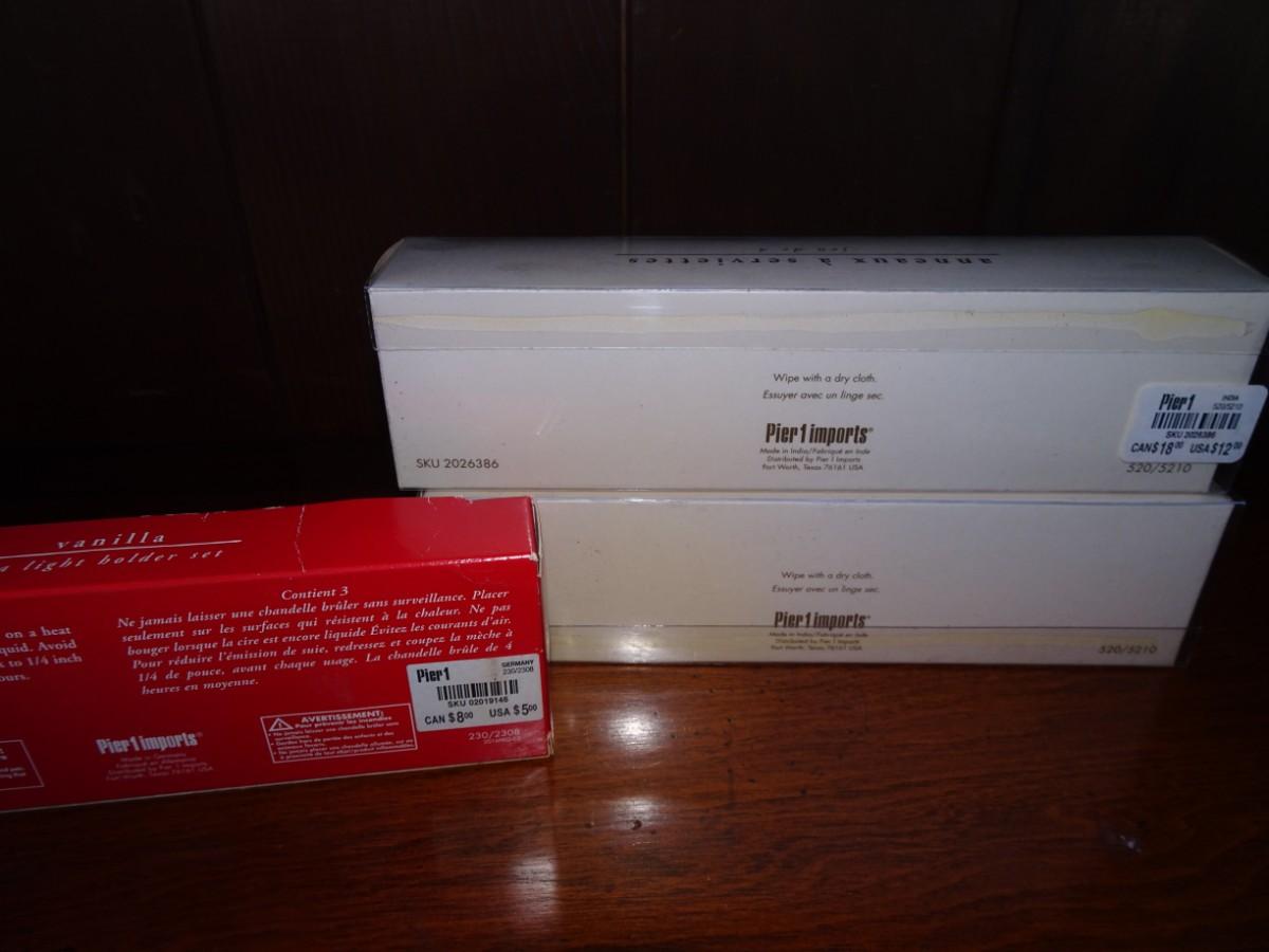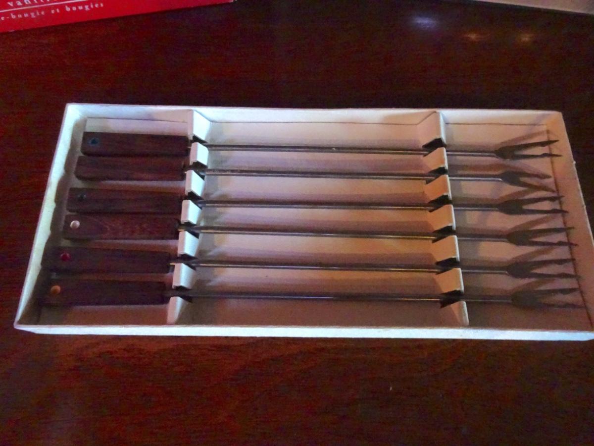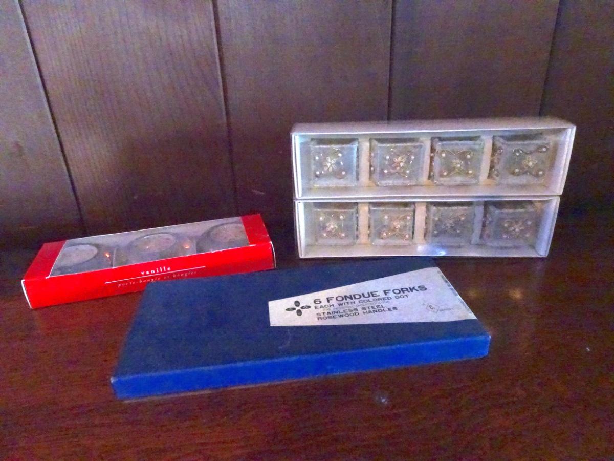 LOT 111. PIER ONE NAPKIN RINGS AND CANDLES VINTAGE FONDUE FORKS