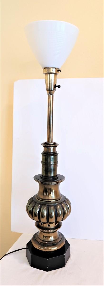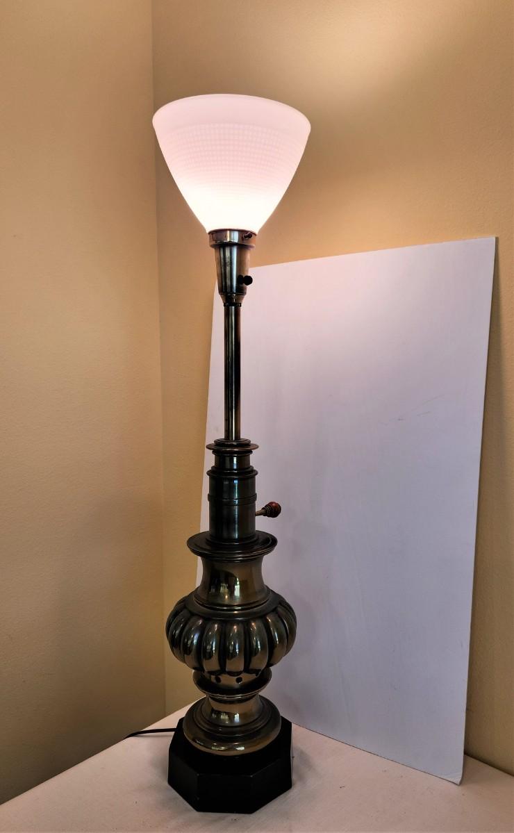 Nice (heavy) brass torchiere-style table lamp - good working condition. Mid-Century. 35" tall.