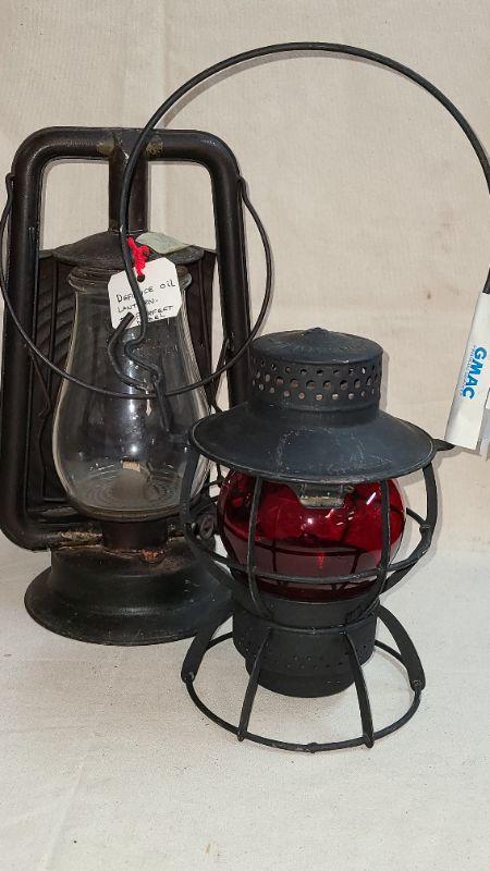 Defiance oil lantern and Dreesel lantern with PRR red globe. Please see all pictures for measurements, condition of the item/s, and the contents if listed as a lot. Pictures are the best representation of the item. Thank you for looking and have fun bidding! We appreciate our Treasure Hunters!