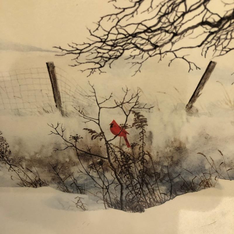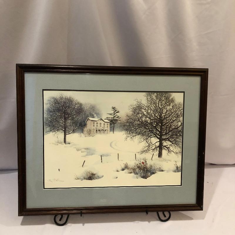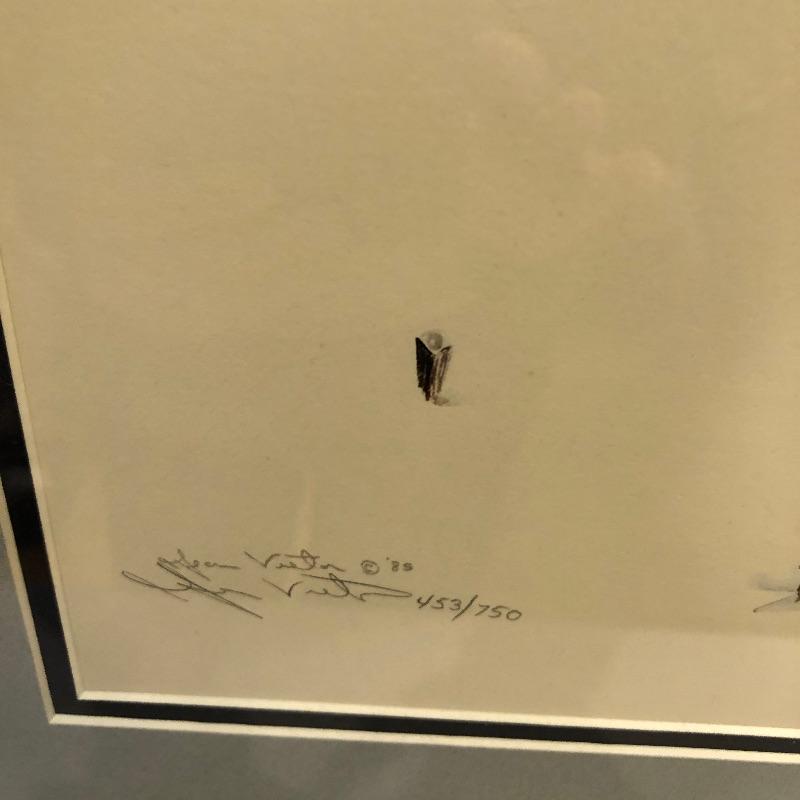 This amazing snow art by Jean Vieter is signed in 1985, and numbered 453 of 750. Piece is double matted and ready to hang. Frame has some minor blemishes see photos.