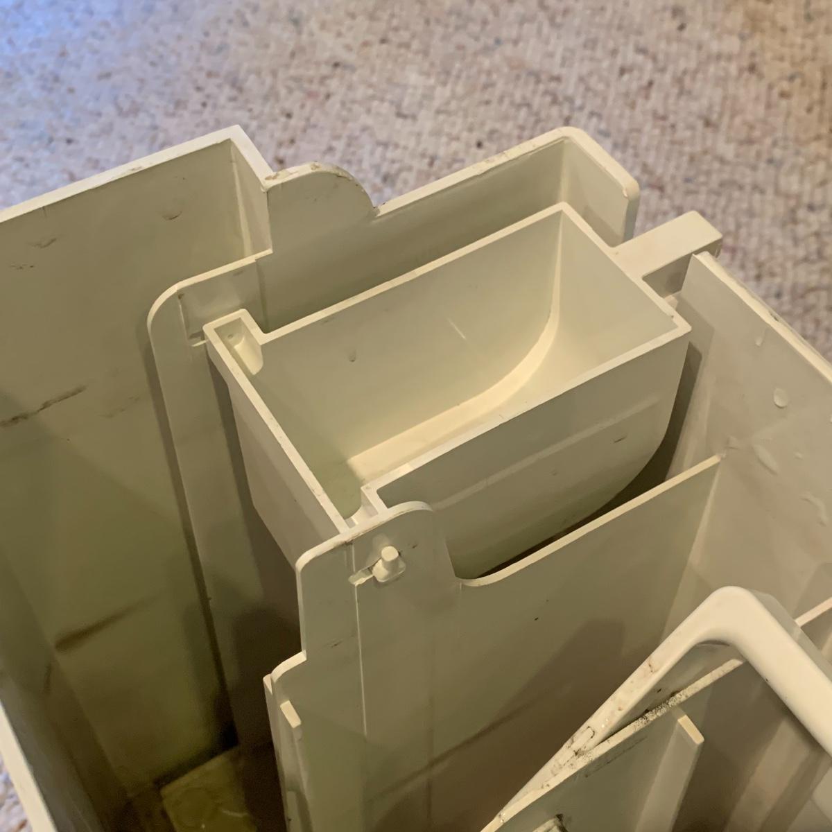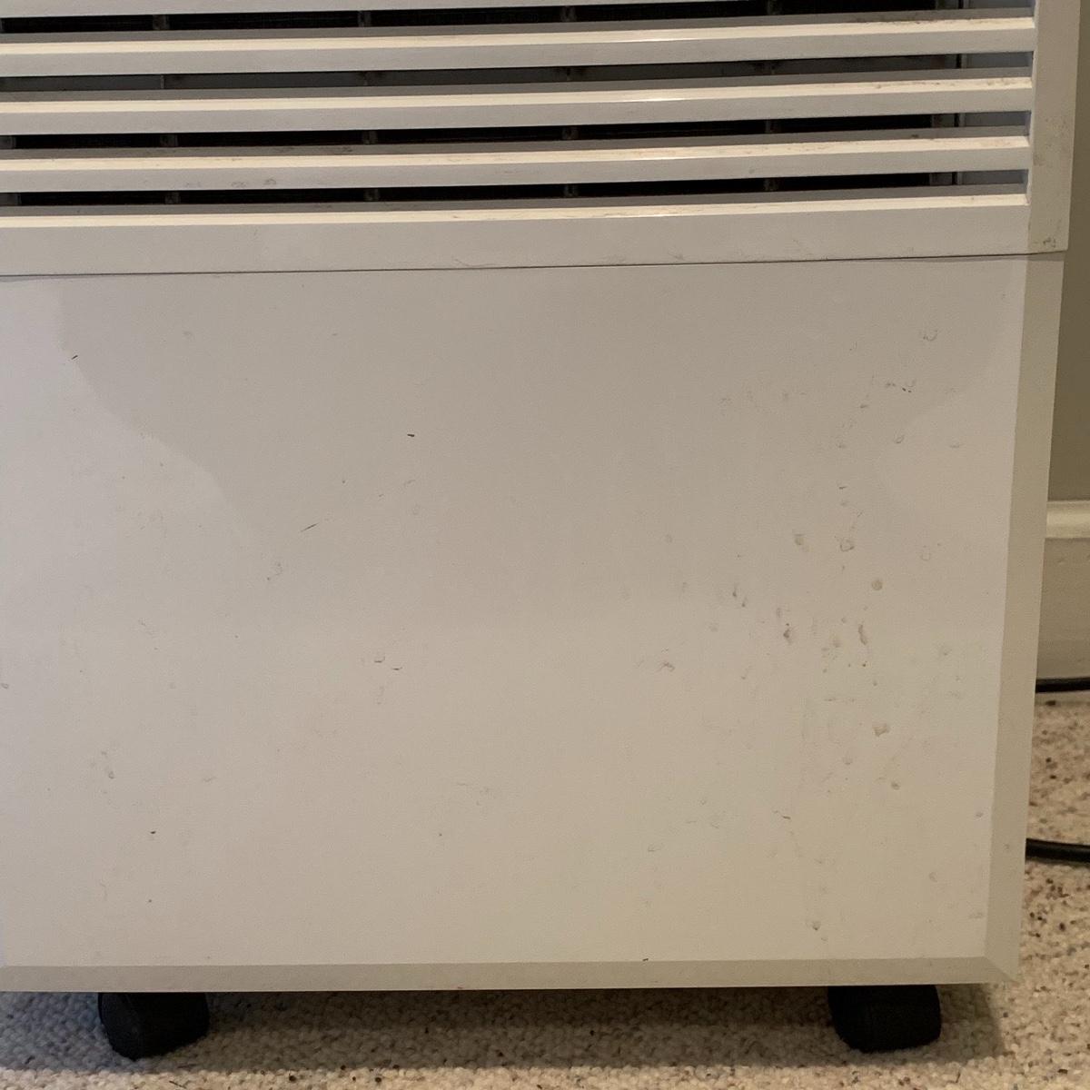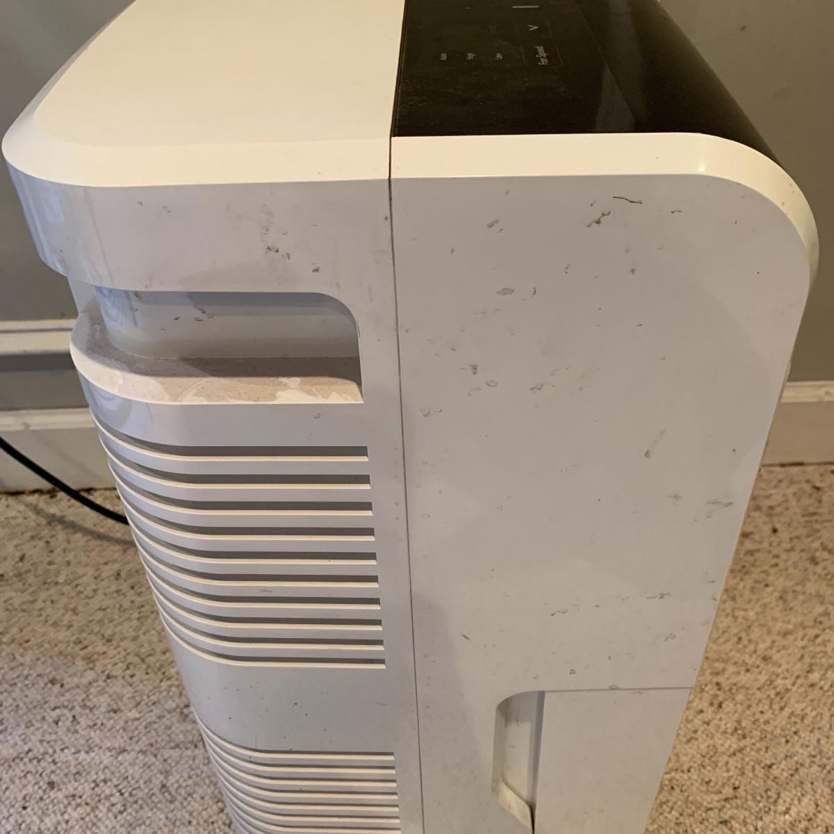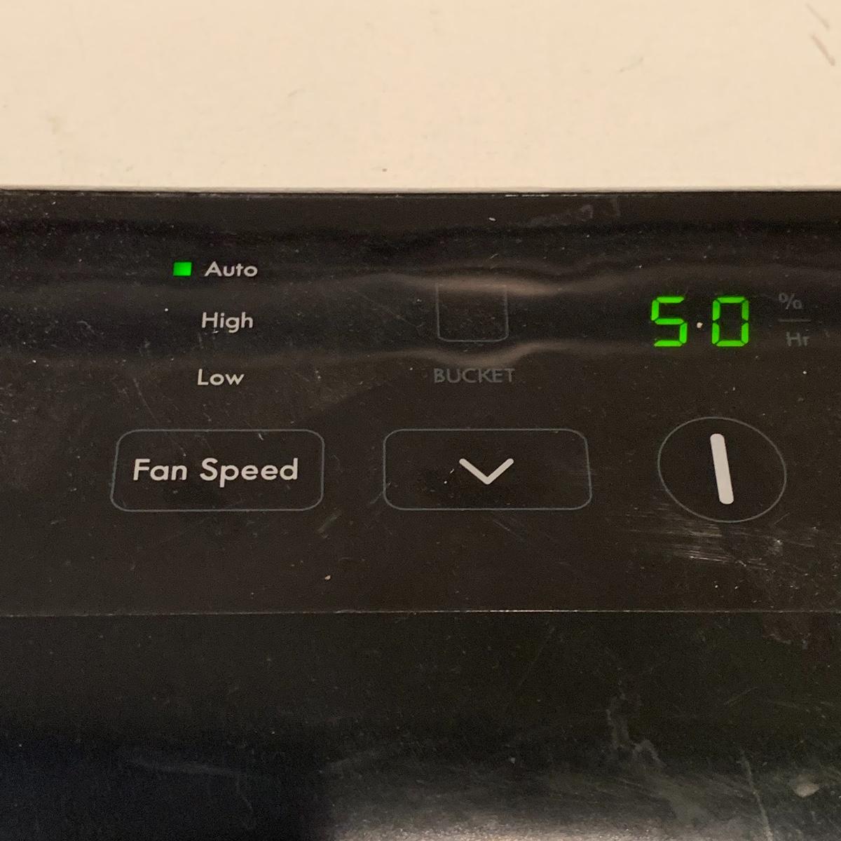 Summers in North Carolina get quite humid, so it is perfect timing for this dehumidifier to go home with you to help reduce the humidity in your home. It can also speed up drying time for new drywall or freshly painted rooms. This dehumidifier is a Kenmore model no. 251.50501012 that has a 50 pint/24 hour capacity. It has multiple fan speeds and settings, including a timer and delayed start function. It has a light that comes on to indicate when the bucket is full of water and needs to be emptied. It powers on and all the buttons work and fan works. It has four wheels for easy transport to different rooms in your house. It has accumulated some dust and grime from being used, so would benefit from a good cleaning. It measures 12” x 14.5” x 23”. Local pickup only.