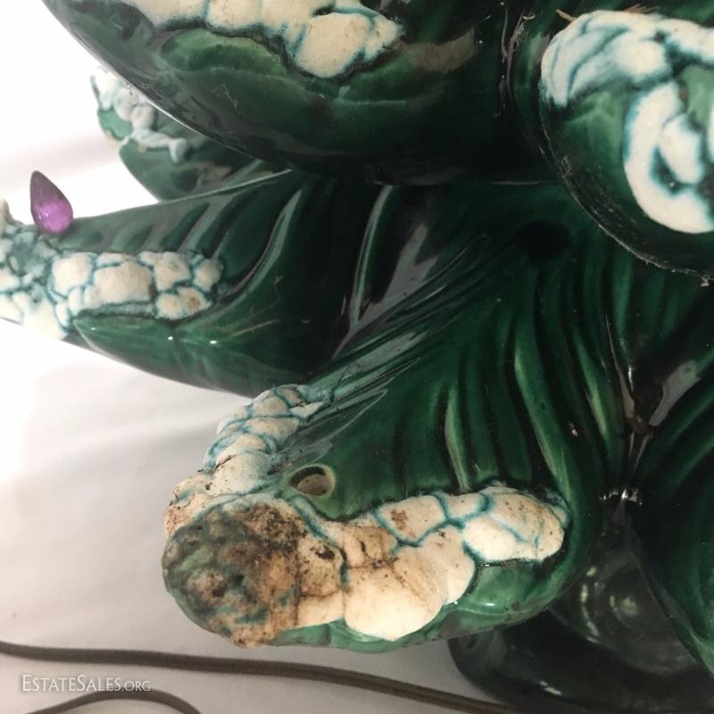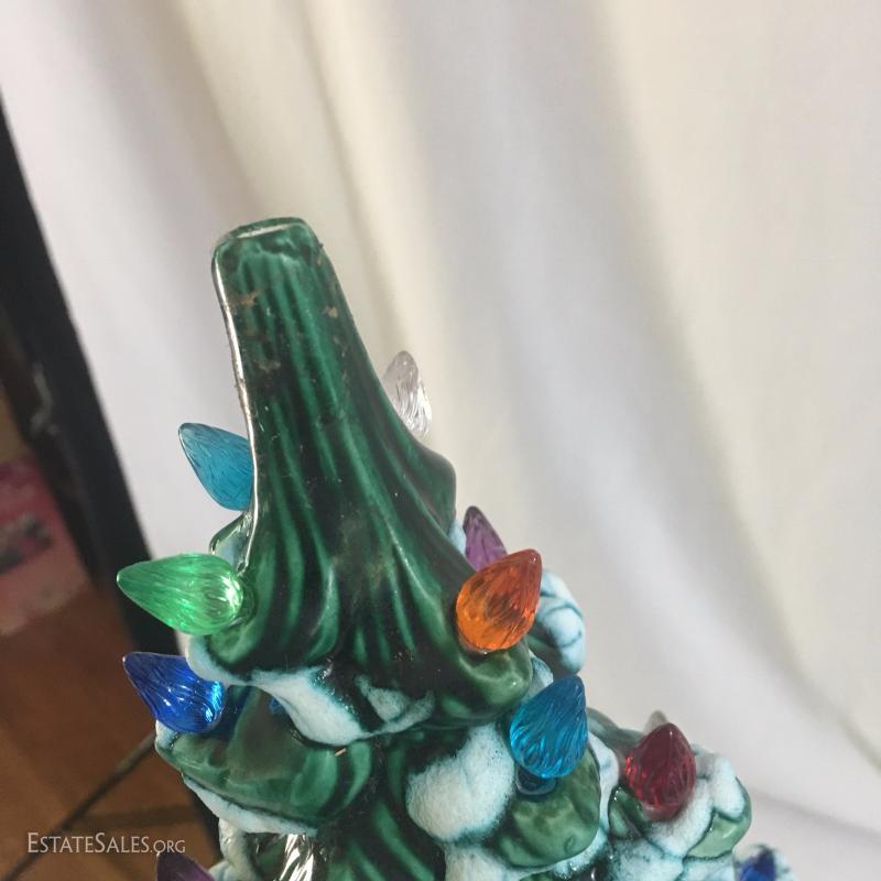 This vintage beauty is in great condition. Stands 24"tall and 16"wide. It is missing one light but all others work. Wind up music box on base. Plays slowly so may need some work.