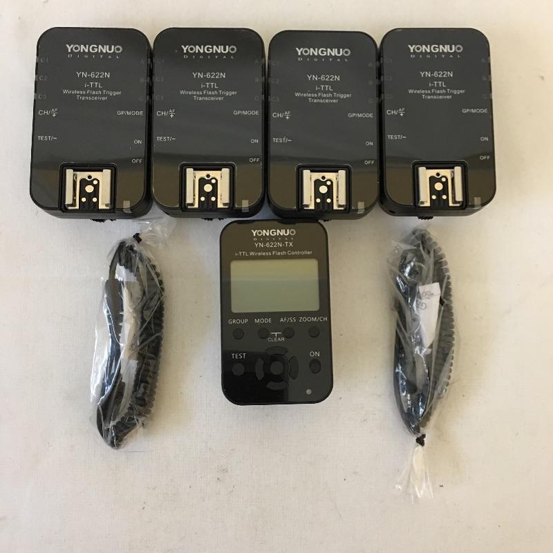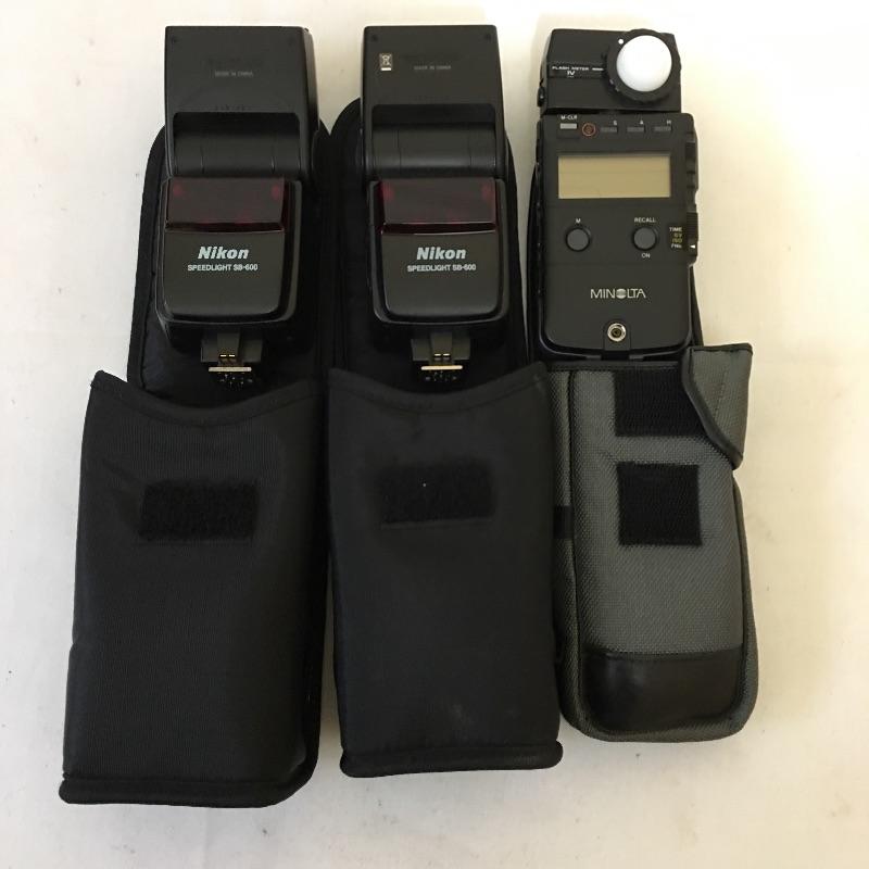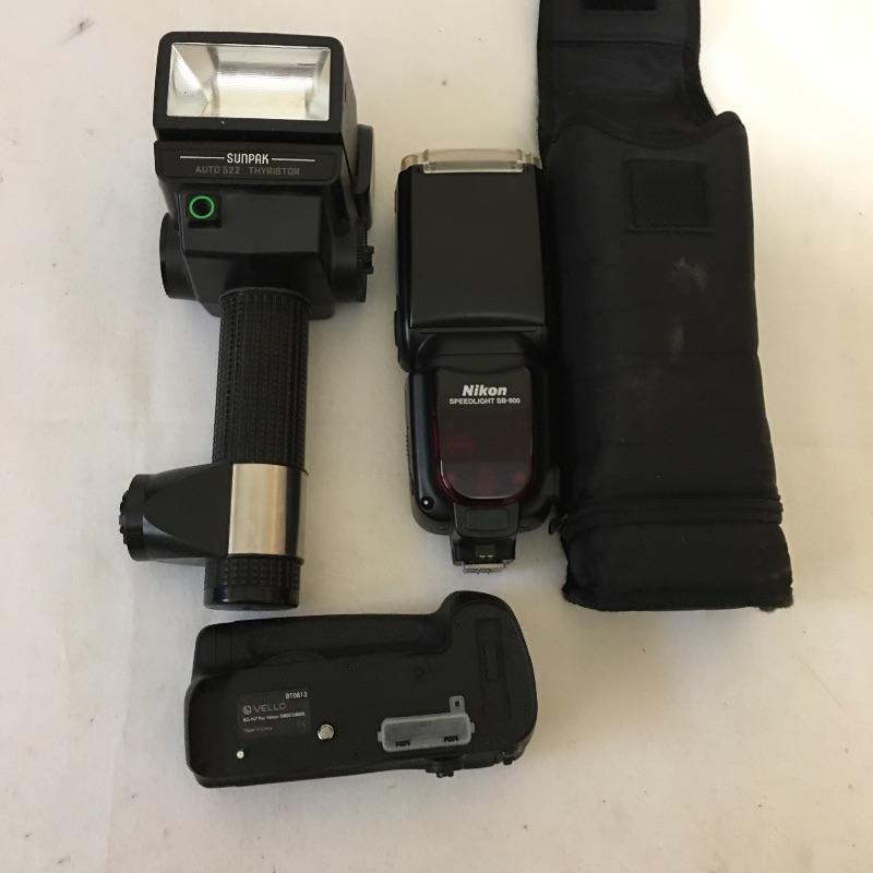Large selection of flash and flash controllers including four Yongnuo yn-622n wireless flash transceivers one wireless flash controller, Weston light meter, pair of Nikon SB 600 speedlights, Minolta flash meter, Pair of Sunpak flashes, Nikon speedlight SB-900, Vello BG-N7 and More.