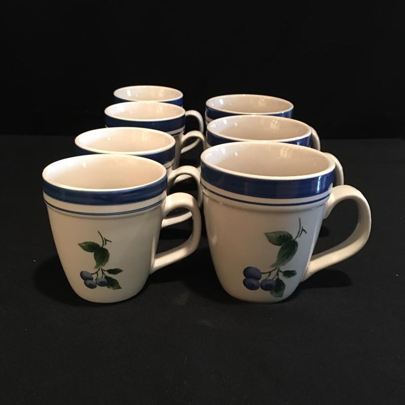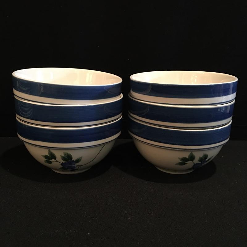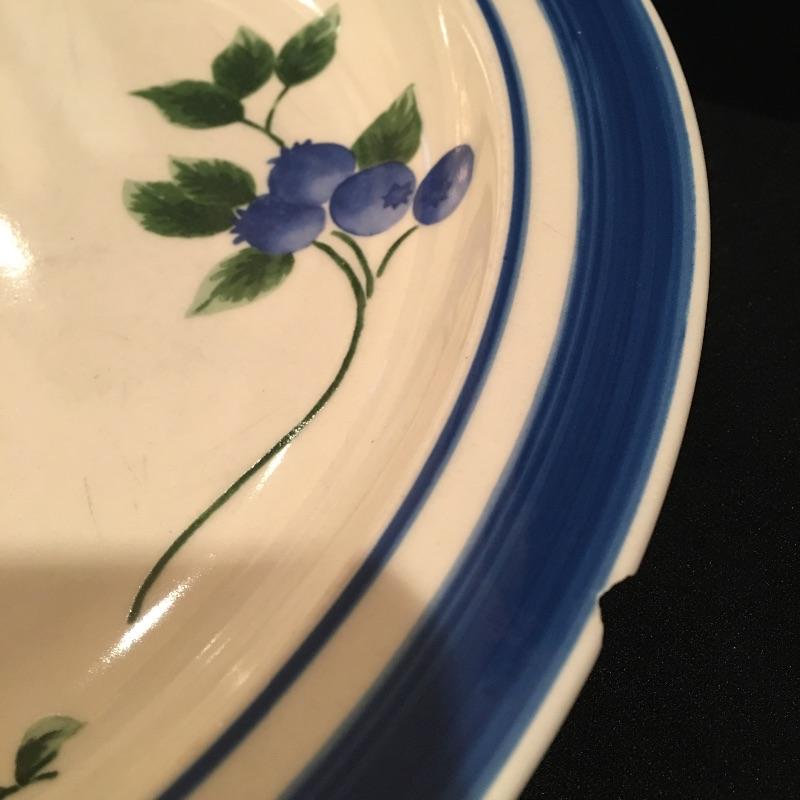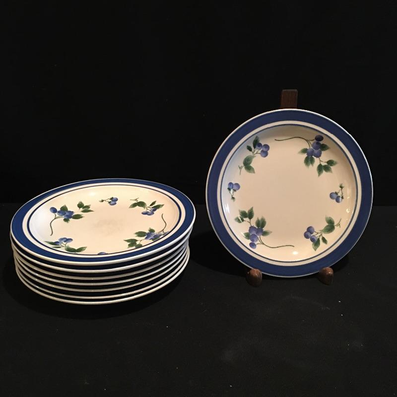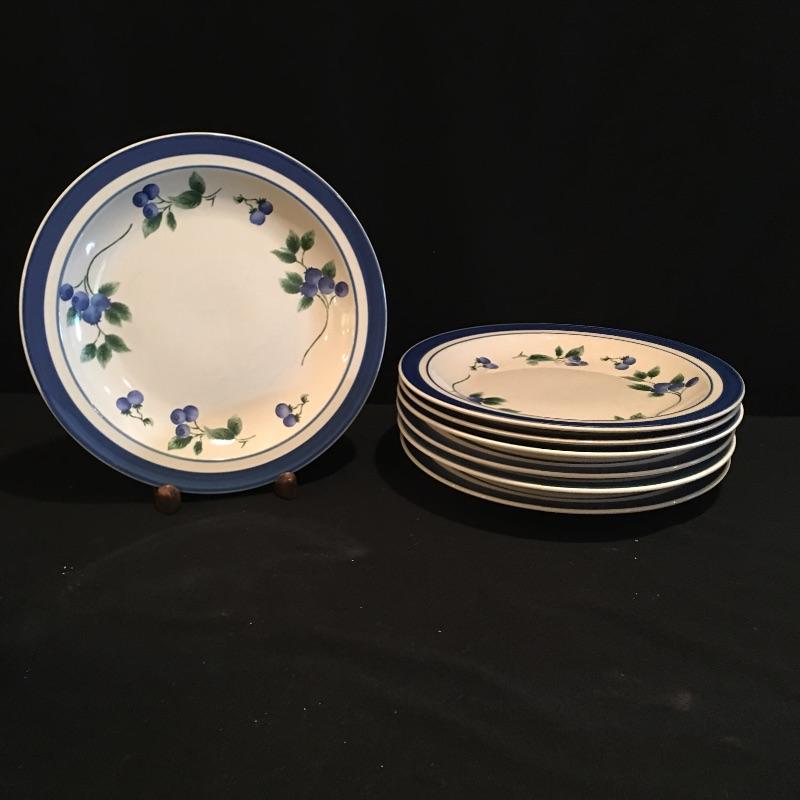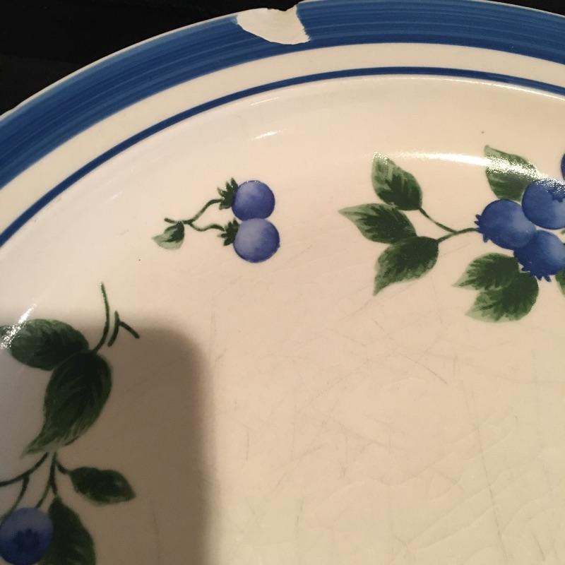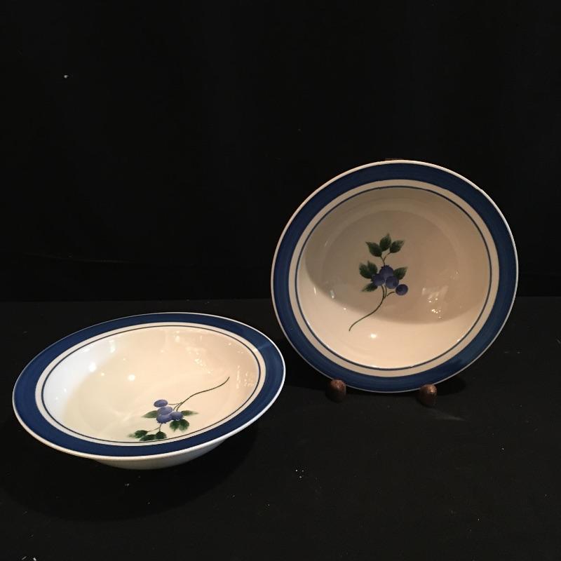 This L.L. Bean dish set in Blueberry pattern will add some country flair to your home. Set includes two serving bowls, serving platter, six bowls, seven dinner plates, eight small plates, four mugs and three large mugs. Serving platter 12”D x 1.75”.