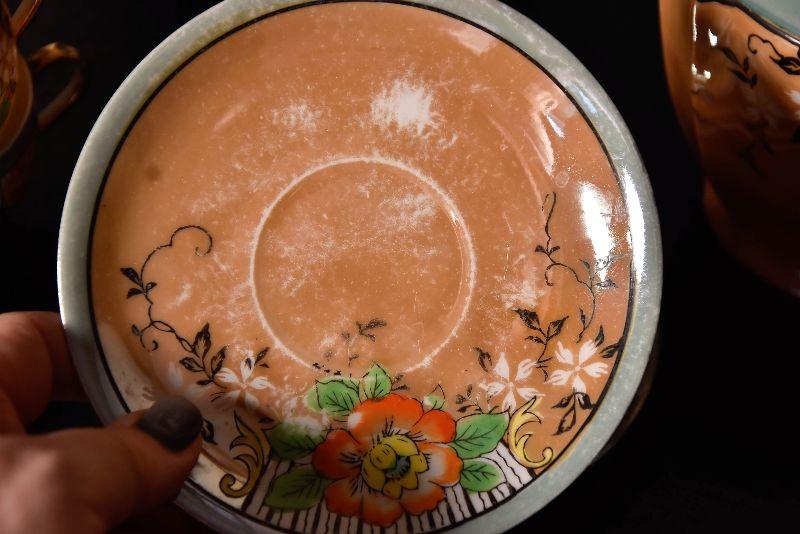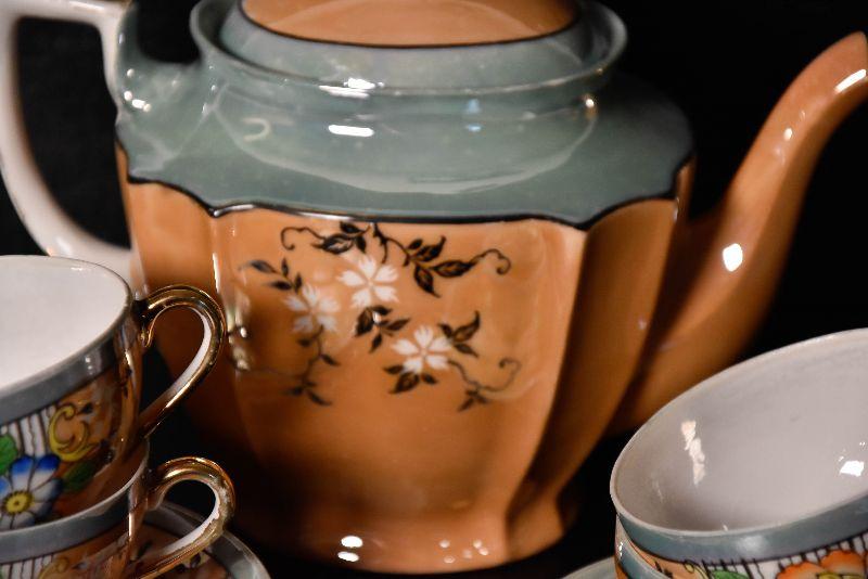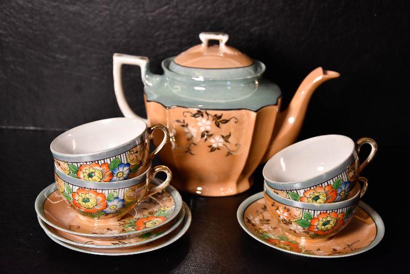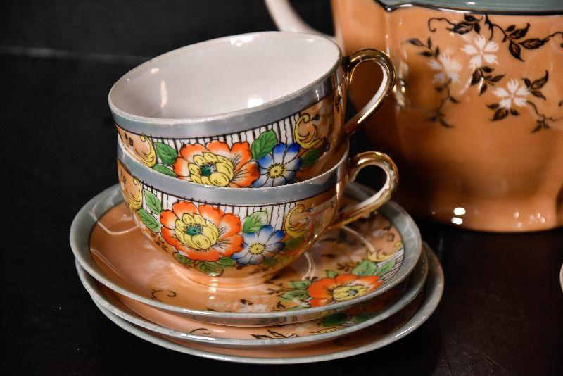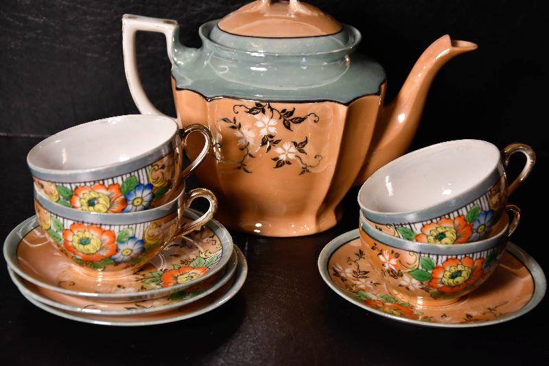 Lot 111: Lustreware Teapot and 4 Teacups and Saucers