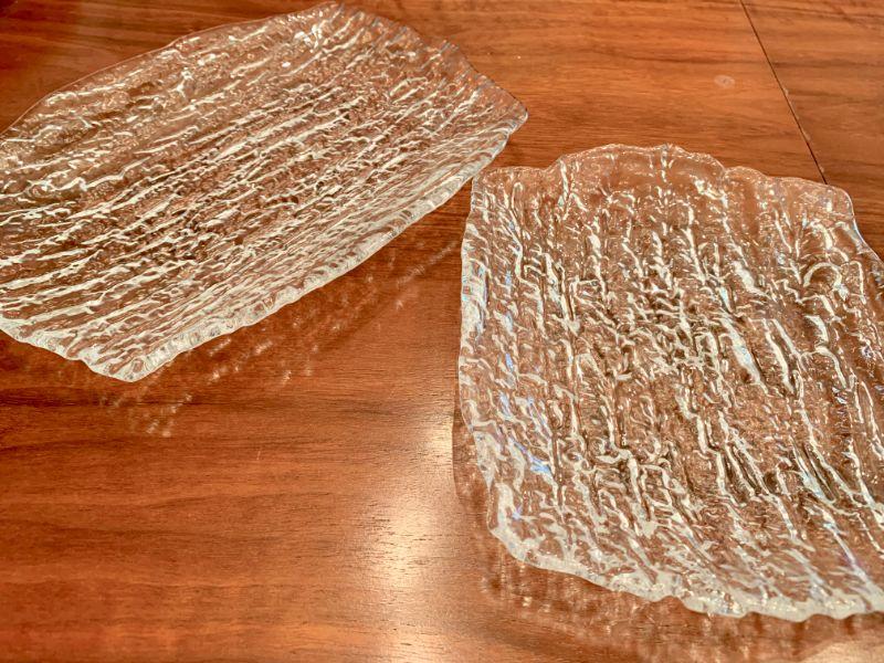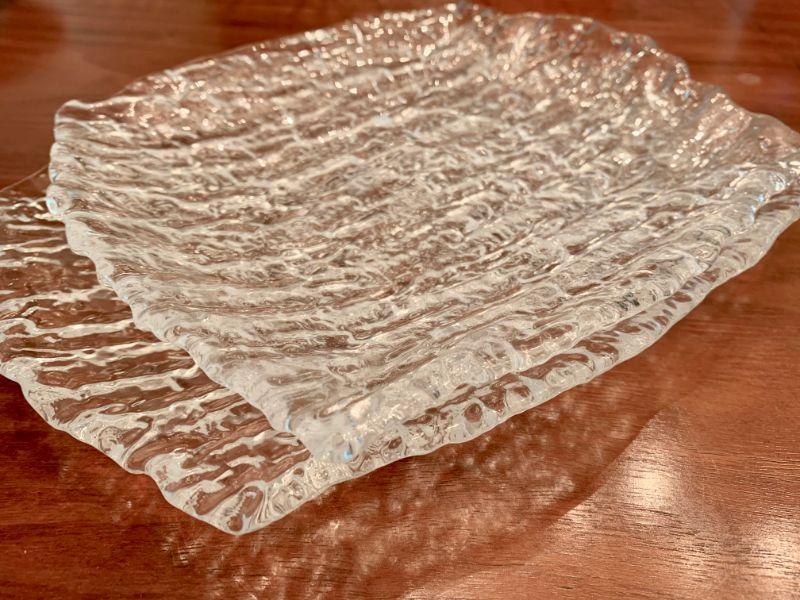 LOT 111  MCM SCANDINAVIAN TEXTURED RIPPLE CRYSTAL FLAT PLATES TABLE DECOR