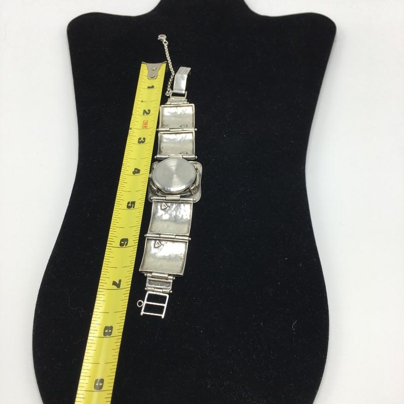 Lot includes a square link hammerlocks sterling silver watch with stainless steel back plate, adjustable fold over clasp and safety chain. Working condition could not be verified as battery is dead.