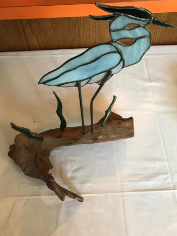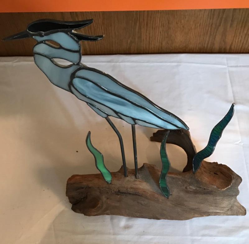 Lot #111 Stained Glass Style Heron on Driftwood