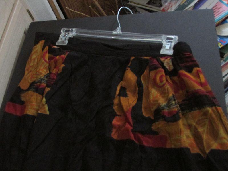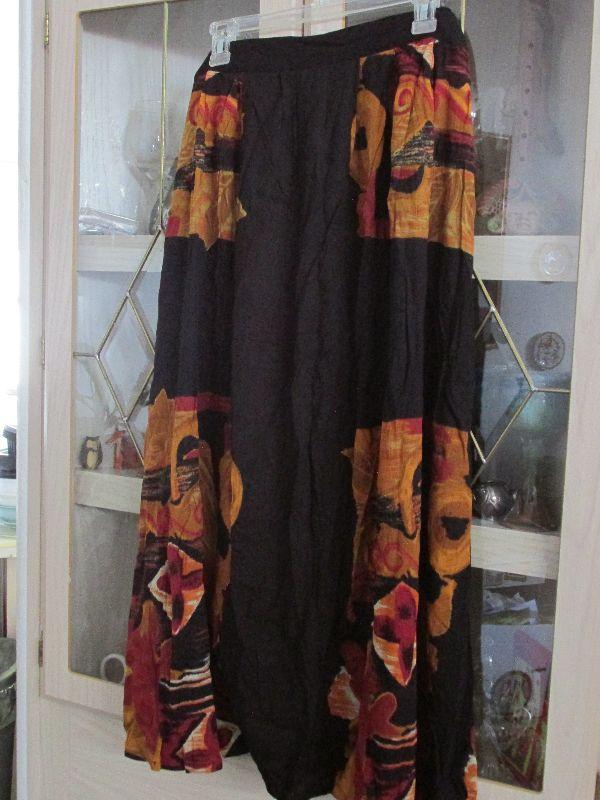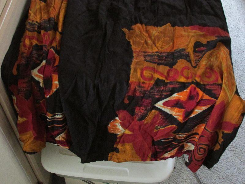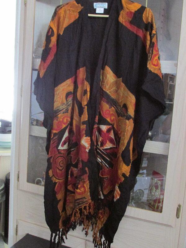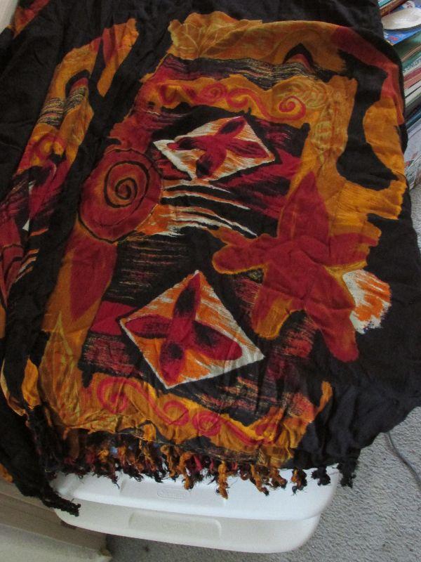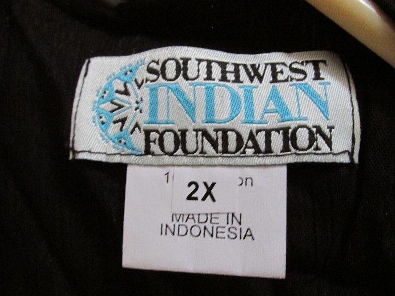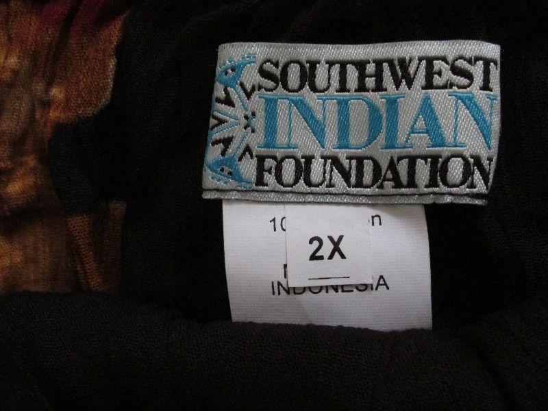 Black with patterned design Southwest Indian Foundation shawl and matching skirt. Both are size 2X. No significant wear on either item.